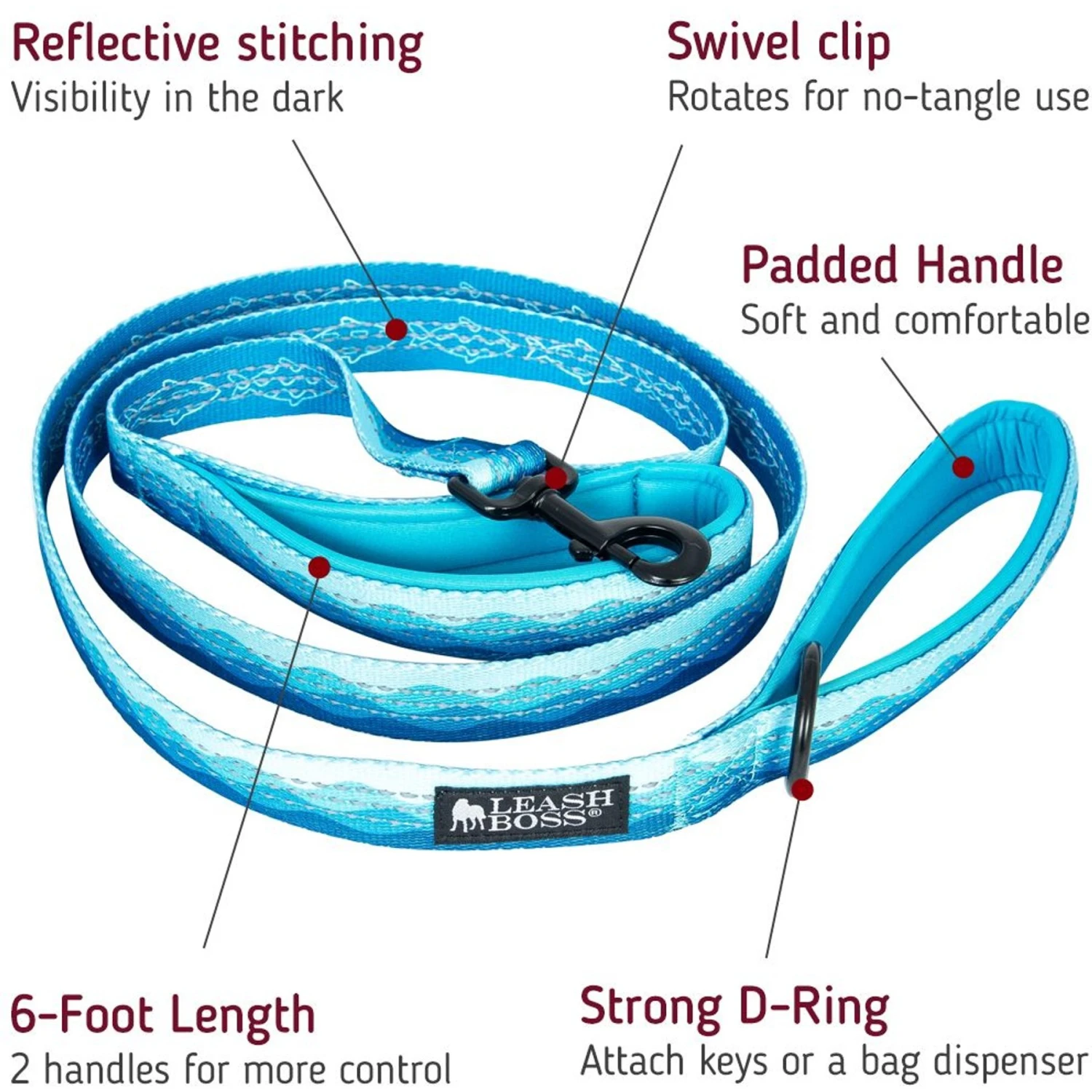 The Leashboss Two Handle Dog Leash helps you to stay in control during every adventure with your furbaby. It features two handles, including a traffic handle at 18 inches when you need more control or want to walk with your furbaby close to you. It comes in a fun pattern with matching collars (sold separately), so your best friend will look paw-sh. Three lines of reflective threads make your best friend easier to see at night. The neoprene-padded handles help keep you comfy, while a D-ring allows you hang your keys or add a poop bag dispenser.