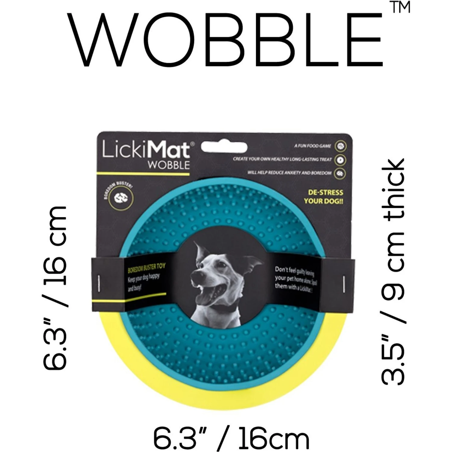 With the LickiMat Wobble Slow Feeder Dog Bowl, your furbaby can enjoy hours of su-paw tasty entertainment. Paw-fect for food, treats, yogurt and peanut butter, this mat is a fun, engaging alternative to a slow feed bowl. The wobbling action makes it extra challenging to lick the treat from the rubber dimpled surface, making mealtimes and treat times more entertaining and long-lasting. By promoting licking, your dog enjoys an endorphin release to help calm and soothe him. Promoting slower eating can help to reduce gulping and bloating—plus, licking generates saliva to maximize dental health. This versatile bowl is paw-fect for pups who like to gulp their food or who just need a little more stimulation and fun throughout the day. The bowl is dishwasher safe for su-paw easy cleanup.
