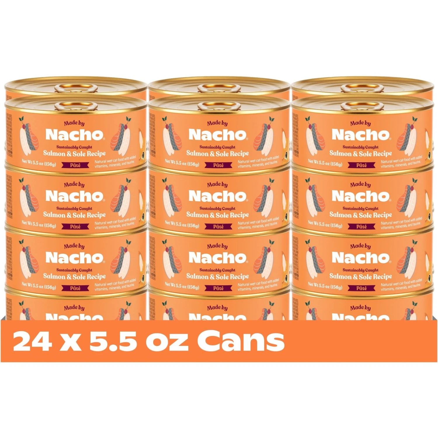 Revitalize your feline gourmand’s flavor palate with Made by Nacho Sustainably Caught Salmon & Sole Recipe Grain-Free Pate Wet Cat Food. Made in the USA, this nutritious pate consists of sustainably caught salmon and sole. Plus, it is doused in a savory bone broth, which gives your feline overlord extra hydration as he feasts. This well balanced, grain-free, wet cat food is chock full of fiber-filled fruits and vegetables that are infused with healthy vitamins, minerals—and antioxidants like prebiotics, Omega-3, and Omega-6. All of these powerhouse ingredients work to keep your precious kitty happy and healthy so he can play and cuddle with his favorite human servant all day long!