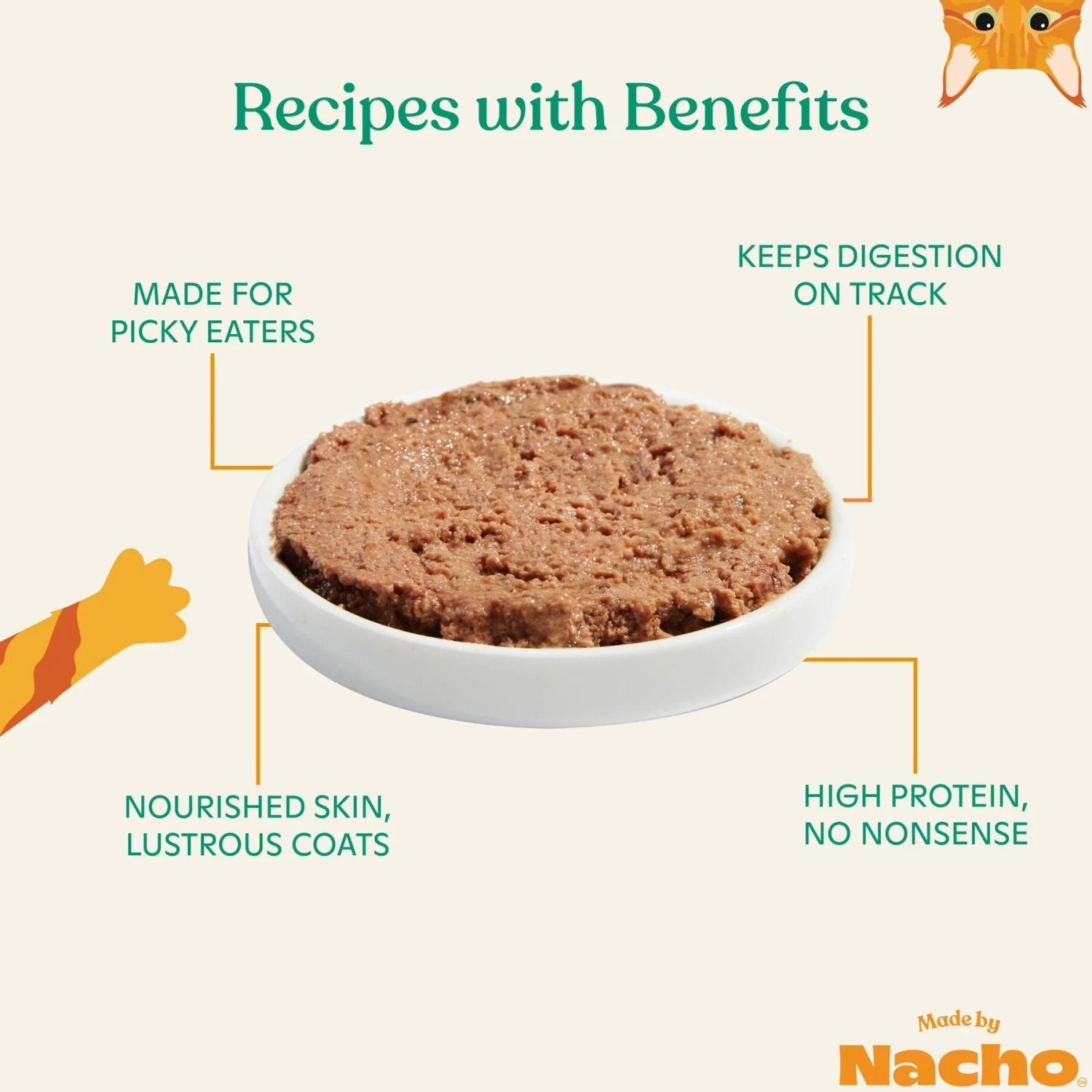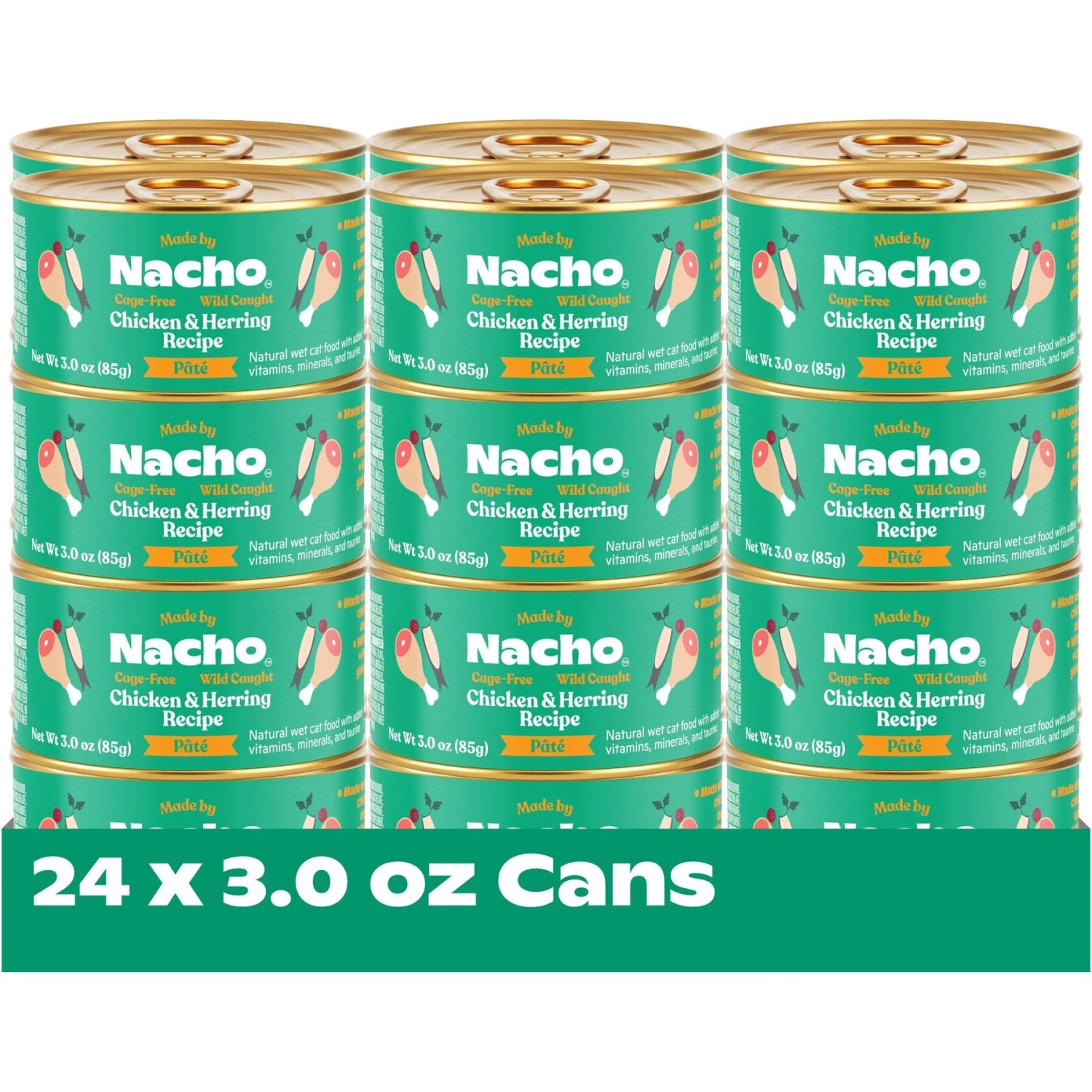 Revitalize your feline gourmand’s flavor palate with Made by Nacho Wild-Caught Chicken & Herring Recipe Grain-Free Pate Wet Cat Food. Made in the USA, this nutritious pate consists of wild-caught herring and cage free chicken. Plus, it is doused in a savory bone broth, which gives your feline overlord extra hydration as he feasts. This well balanced, grain-free, wet cat food is chock full of fiber-filled fruits and vegetables that are infused with healthy vitamins, minerals, and antioxidants like prebiotics, Omega-3, and Omega-6. All of these powerhouse ingredients work to keep your precious kitty happy and healthy so he can play and cuddle with his favorite human servant all day long!