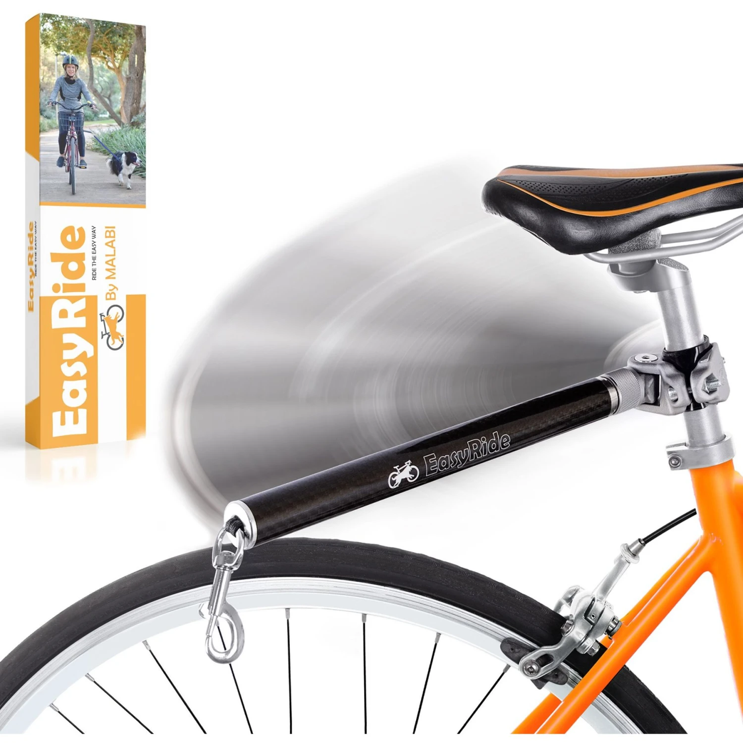 Your best bud can comfortably run next to you while you enjoy an invigorating bike ride with the Malabi Rotating Dog Bike Leash, Carbon Fiber. The unique 180 degree dynamic rotation option allows your pal to run beside you and move around your bike without endangering either of you. When you make a turn, the rod intuitively turns and your dog adjusts to the change in direction. If your pup needs to slow down, the leash rotates slightly backward so he can go at his own pace without jerking you and the bike back. This innovative product gives your paw-tner the freedom to safely move around and avoid obstacles while you exercise together—providing a smoother, safer and more enjoyable ride for both of you.