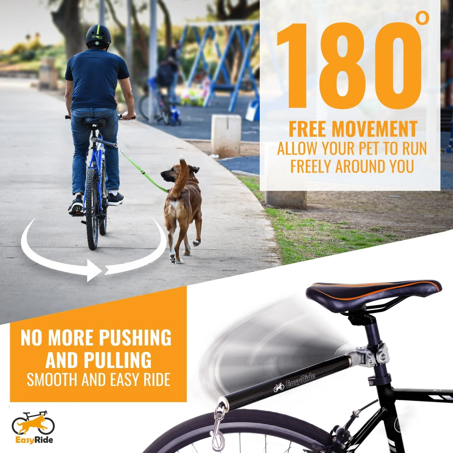 - Rotating dog bike leash let’s your pup run beside you and safely move from side to side of your bicycle while you exercise together.