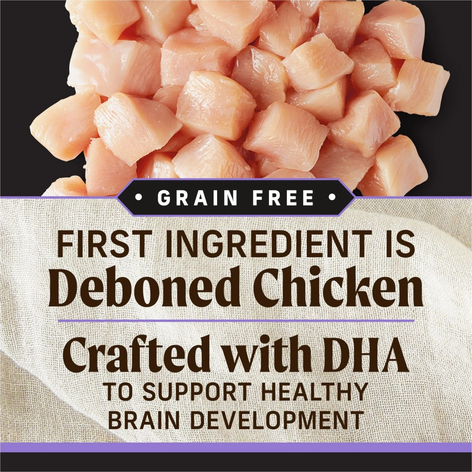 - Real, deboned chicken is the first ingredient in this recipe—it’s crafted with high levels of protein to help your pup develop healthy muscles and energy levels.