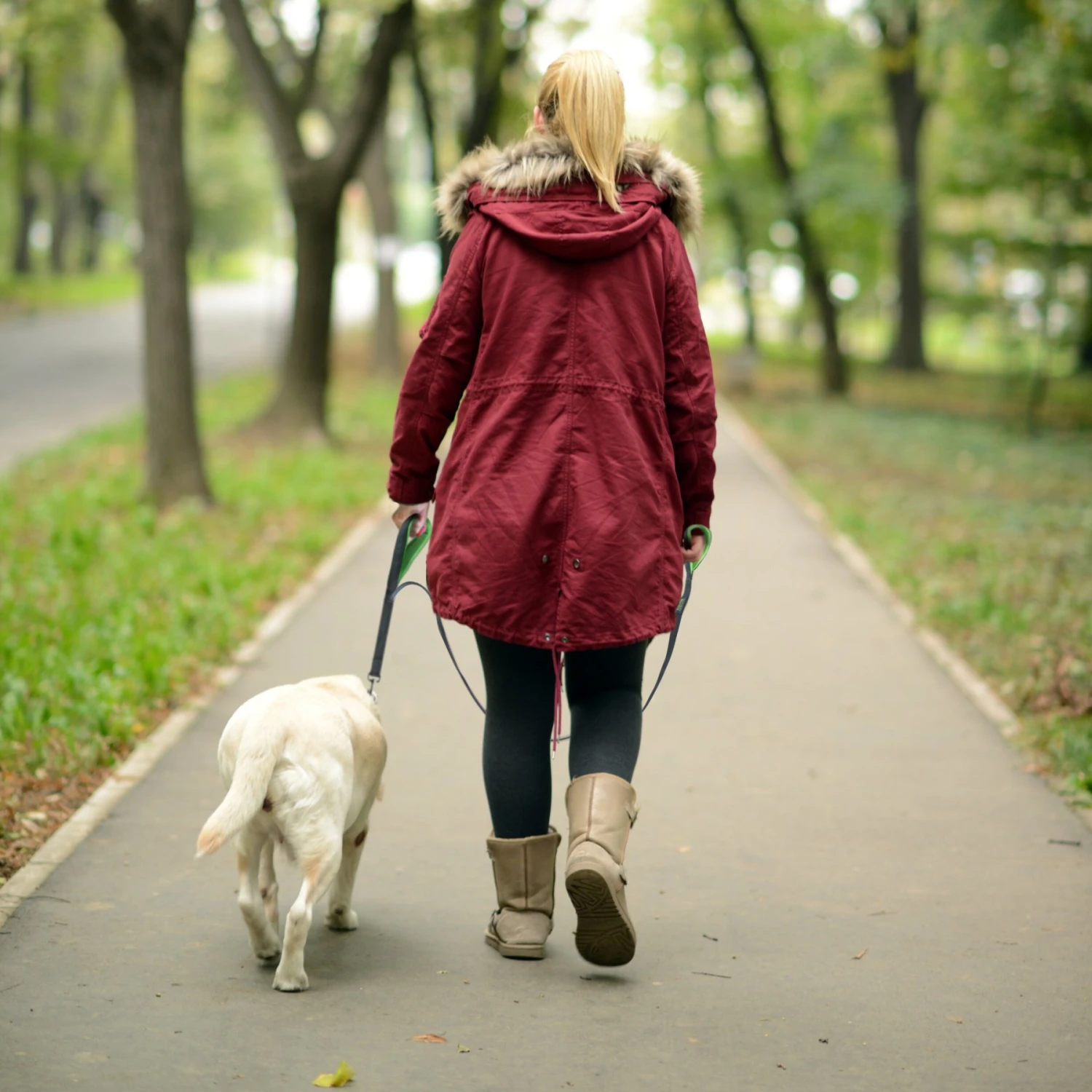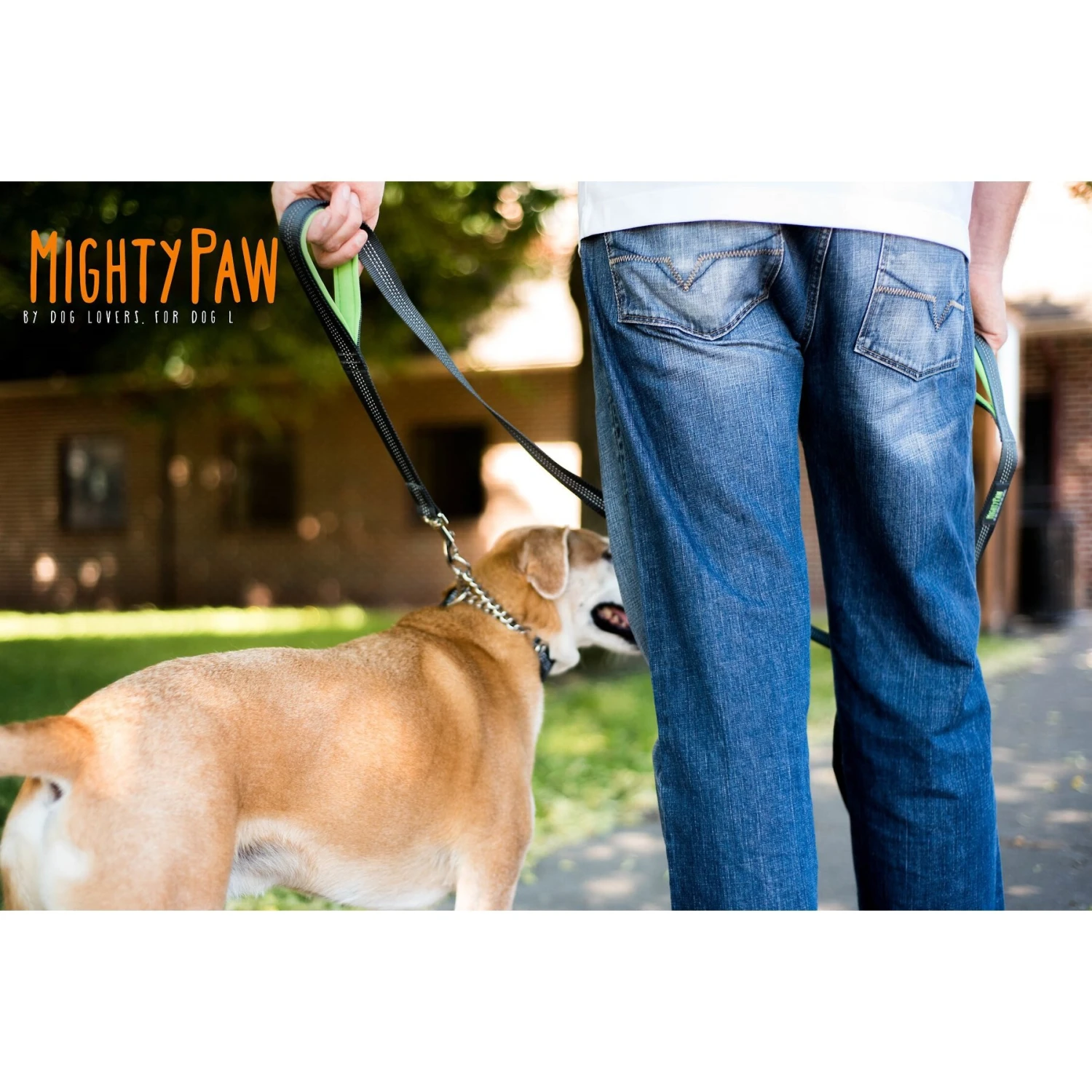 Maintain maximum control with ease when you walk your best friend using the Mighty Paw HandleX2 Dual Padded Handle Dog Leash. It’s like having two leashes in one. Now you can give your curious pup the freedom she needs to explore with this 6-foot leash, but also bring her in close when needed using the second handle located 12 inches from the clasp. Both hand loops are neoprene padded for superb comfort in your hand, while the high-quality 1-inch nylon webbing and large clasp are built to be durable and reliable. For added safety, reflective stitching along the entire length of the leash helps increase your nighttime visibility.