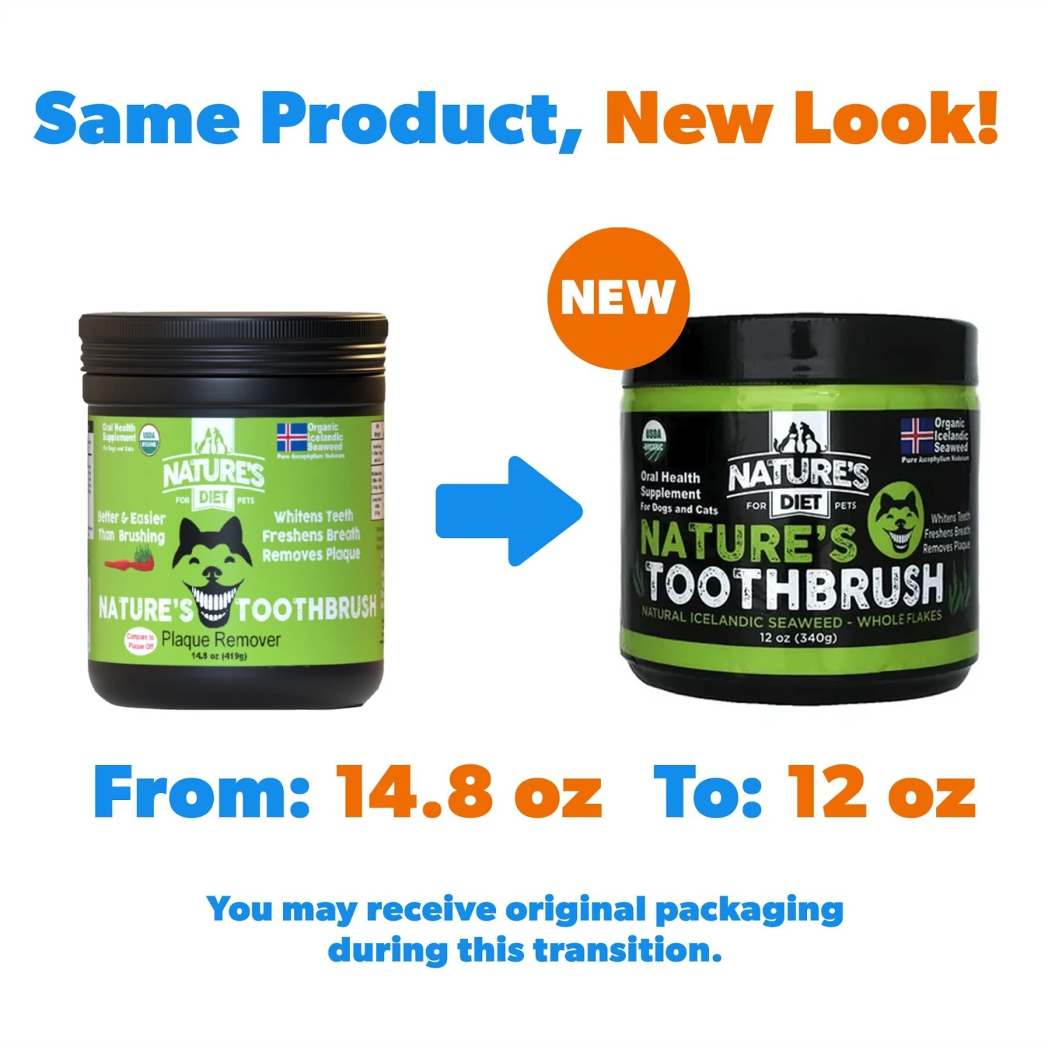 Keep your sidekick’s smile going strong with the Toothbrush Systemic Plaque Remover Dry Dog Food Topping from Nature’s Diet! Simply sprinkle this topping over your favorite canine’s food to systematically break down plaque. And thanks to the special Icelandic seaweed ingredient, this food additive also helps freshen breath for a better-smelling pup. Plus, it doesn’t contain added salt, grains, preservatives, dyes or GMO ingredients for a taste you can trust.