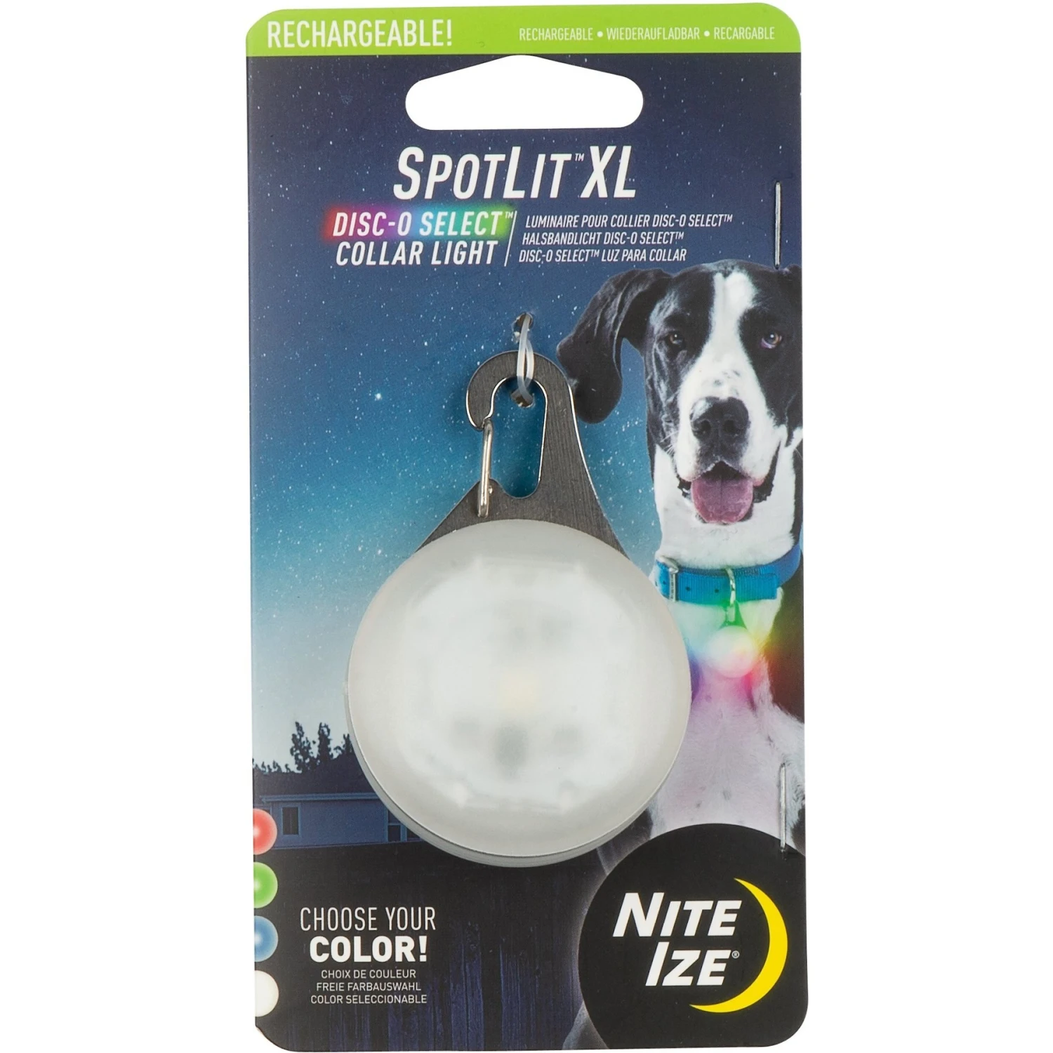 Keep the good times rolling long after the sun sets with a super-bright Nite Ize SpotLit XL Rechargeable Dog Collar Light, Disc-O Select. Attach this paw-some collar light to any collar or harness with the stainless-steel carabiner clip to keep an eye on your fur-iend in the dark. Better yet, you can conveniently recharge it with a micro-USB cable (not included). Choose from color-changing Disc-O mode or four different colors—it’s the paw-fect way to keep track of multiple pets at night.