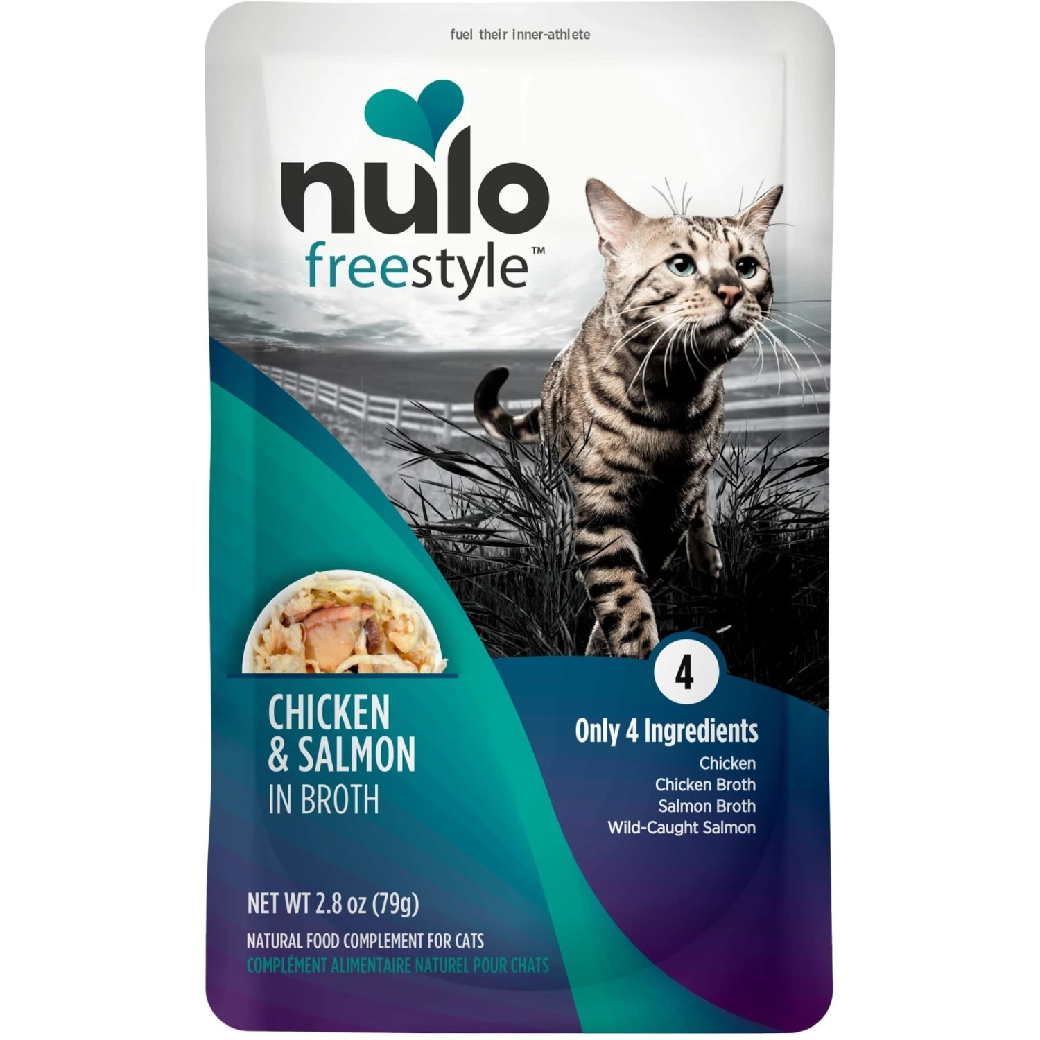 - 4-ingredient recipe contains just all-natural chicken, wild-caught salmon, chicken broth and salmon broth.