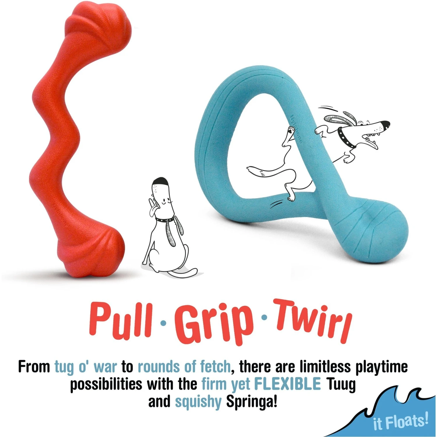 Chewing isn’t all your dog does! Nylabone’s Creative Play Springa and Tuug Interactive Dog Toys Bundle is designed to tap into your fur kid’s creative potential. After all, a dog’s mind is like a young child’s—you simply need the right toys to unleash that imagination! With an inspiring variety of shapes, textures and materials, these play toys for dogs will motivate both you and your dog to discover new ways to play together. The possibilities are amusingly endless!