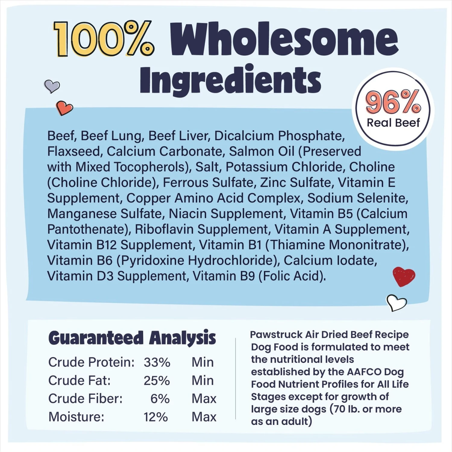 Pawstruck Beef Recipe Grain-Free Air-Dried Dog Food is the paw-fect meal for your pup! This all-natural, gluten-free meal is made in the USA using a slow cooking process that helps to retain more of the natural nutrition. You can rely on this single protein food featuring all-natural ingredients and no artificial preservatives. This full-feed recipe is paleo-inspired and entirely gluten-free for easy digestion.