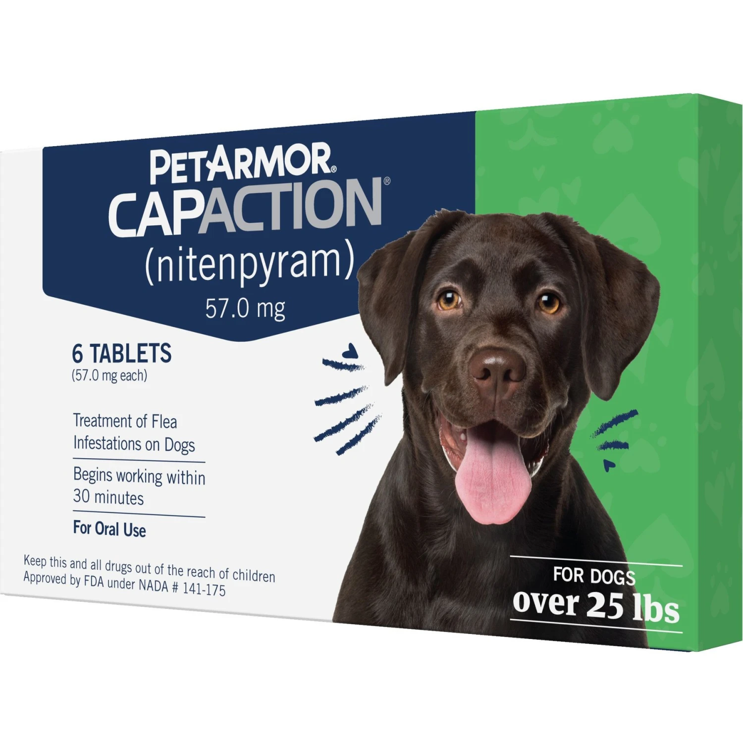 Did your pal bring some extra critters home from the dog park, or after an adventure through the backyard? Don’t worry—you can help your pet ditch the fleas with PetArmor CapAction Oral Flea Treatment for Dogs 25+ lbs, 6 doses. Designed as a small tablet, this treatment won’t rub or wash off, which means it won’t leave dangerous pesticide residue on your pet. Best of all, it’s fast! This oral flea treatment starts killing adult fleas on pets within 30 minutes of administration and is 90% effective against adult fleas within four hours for canine companions.