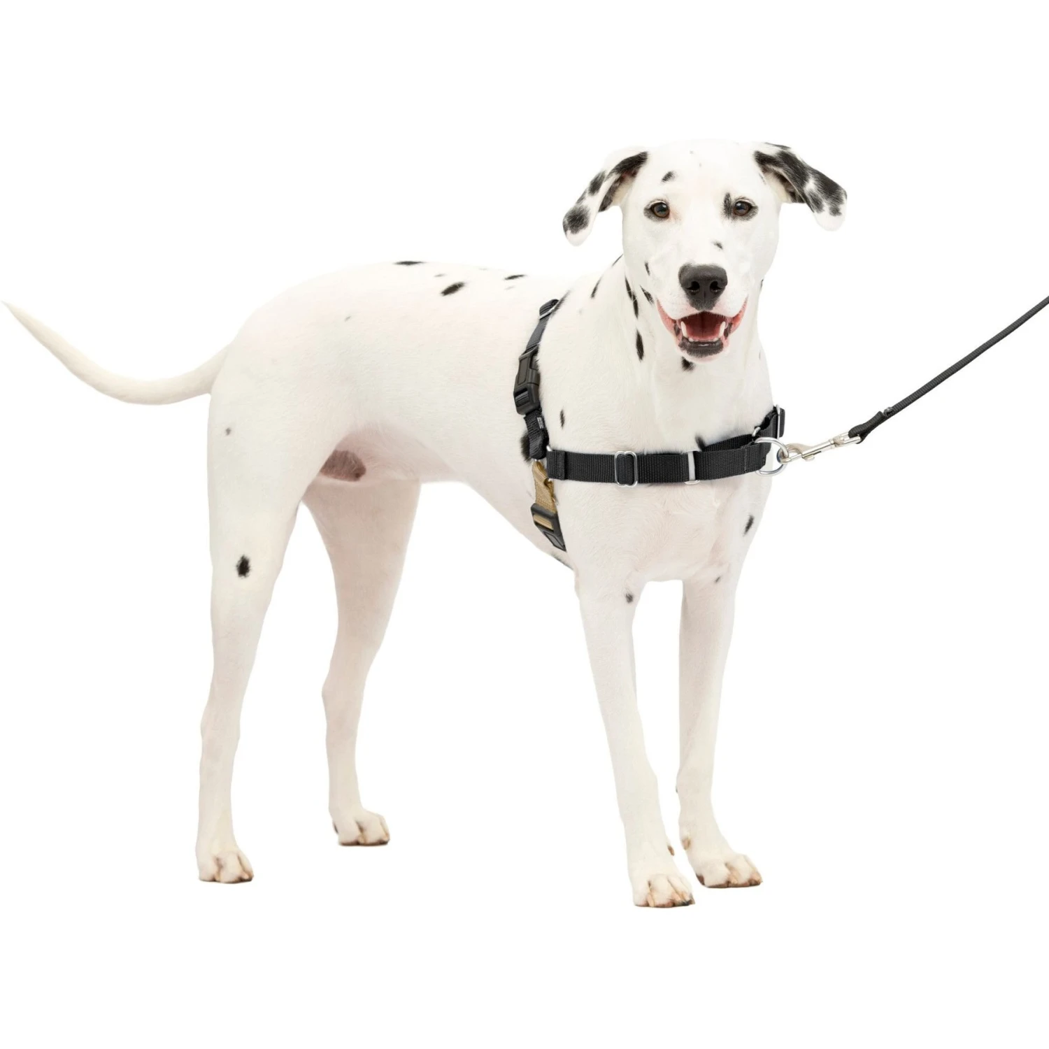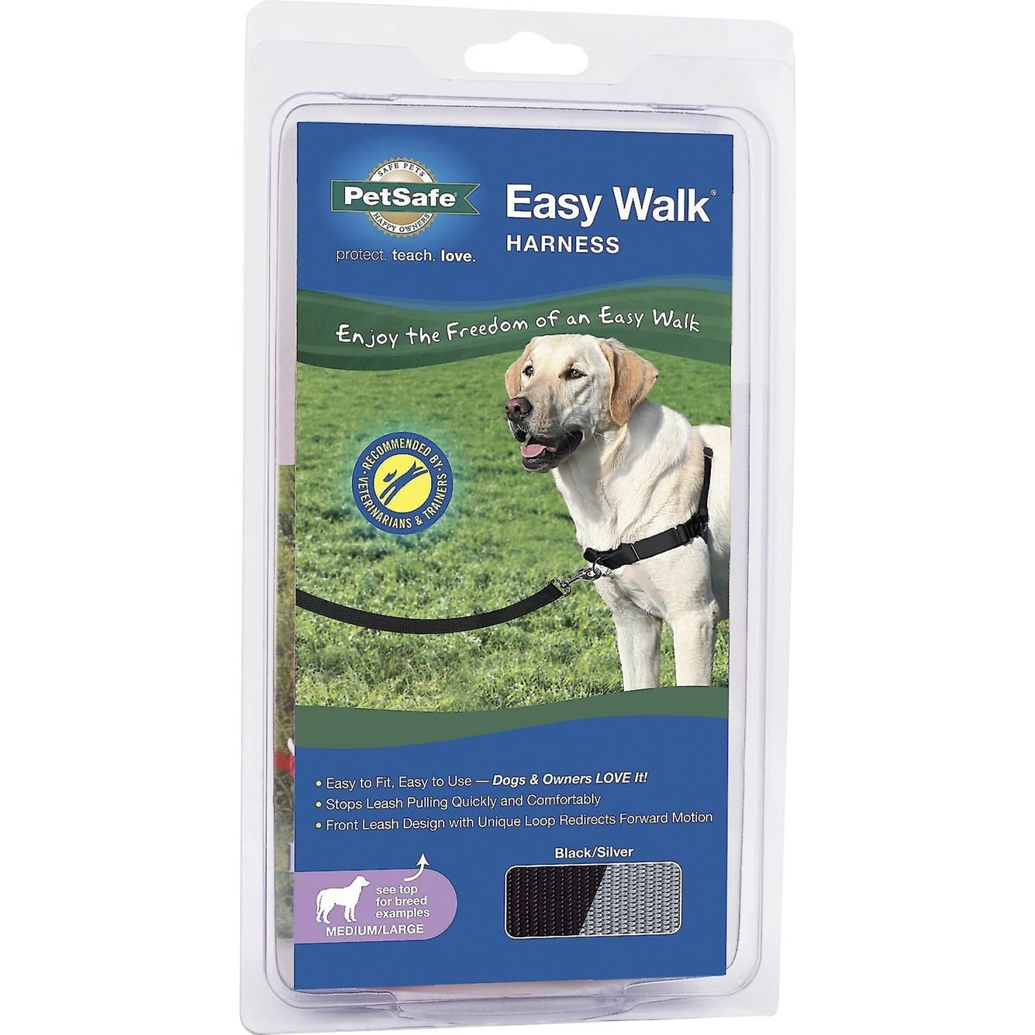 Enjoy pull-free walks with your furry friend with the PetSafe Easy Walk Dog Harness! This thoughtfully designed harness helps stop pulling and teaches your canine companion better leash manners. Unlike a standard collar, this harness rests across your dog’s chest—this helps remove pressure from his neck. The patented martingale loop on the front is paw-fect if your dog tends to pull—when your dog lunges, the loop tightens, which puts gradual pressure on his shoulders, which allows you to regain control and redirect his focus. The belly strap is a different color than the rest of the harness to make it easy for you to get your pup ready for your next ex-pawdition, and the leash attachment is located at the front of the harness, so you can gently guide your buddy. And since the harness has less coverage than other harnesses, it is lightweight and breathable, so your paw-tner can stay cool and comfortable!