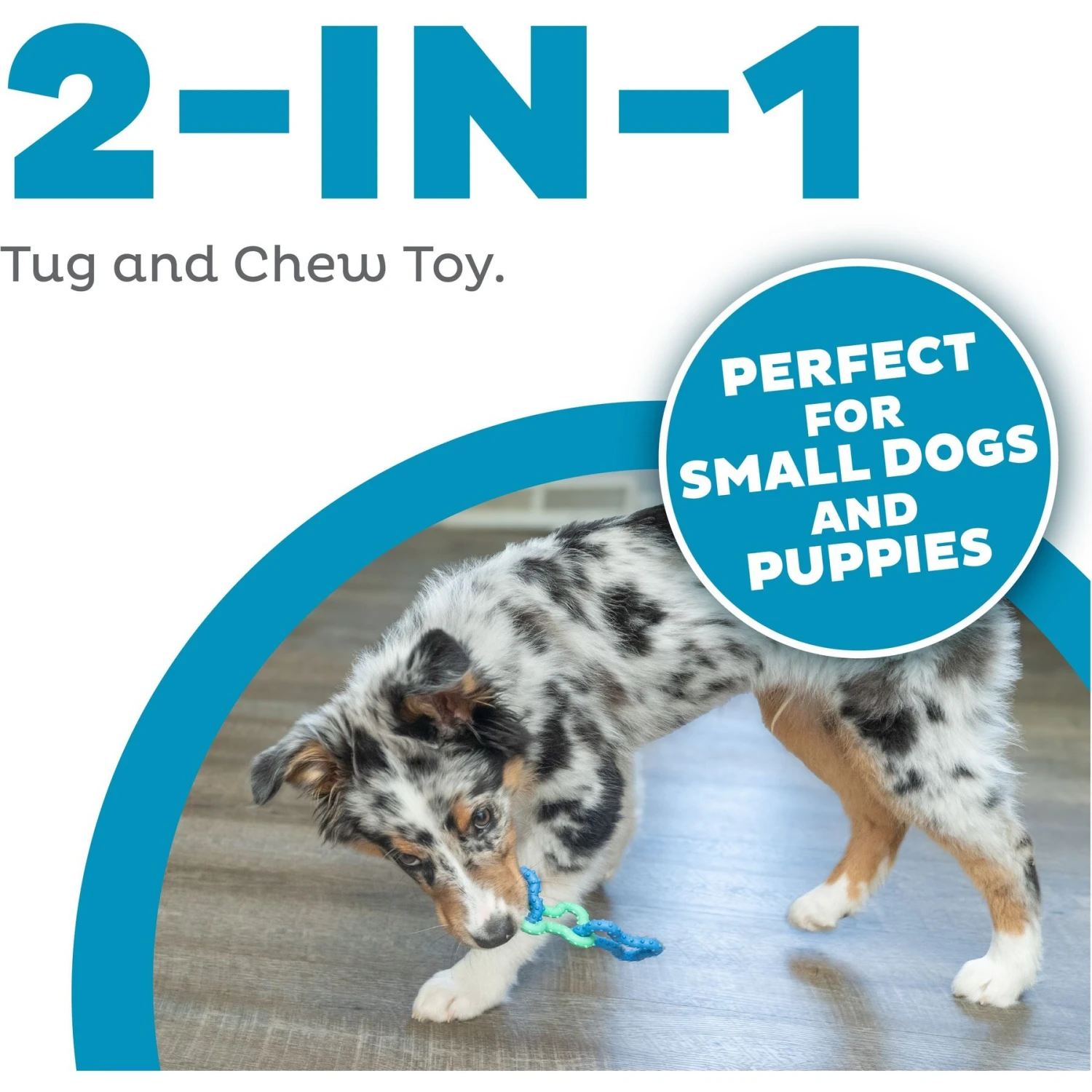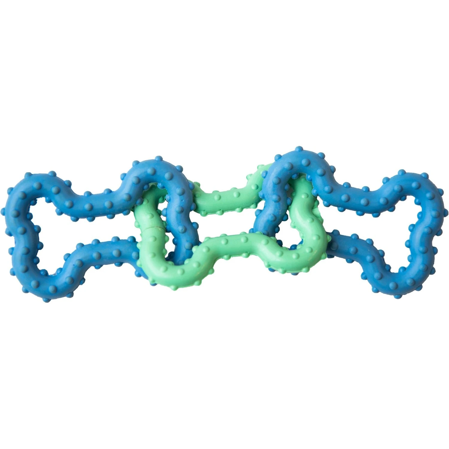 Your puppy or smaller-sized furry friend will enjoy the floppy feel of the Petstages Bone Tugz Dog Toy. These three rubber bones are linked together and made from pliable rubber designed to help clean your pup’s teeth as he chews. Interesting nubs on the links will engage your pup to keep chewing as the bumpy texture works to massage his gums.