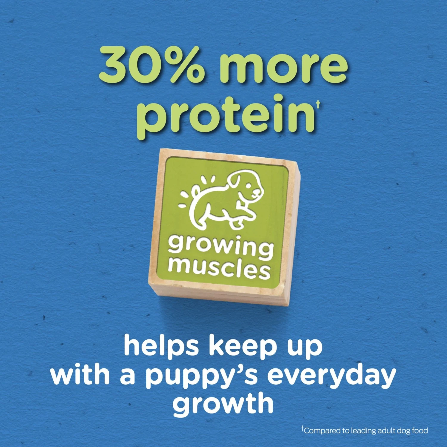 - High-protein puppy food made with real beef supports your puppy’s growing muscles.