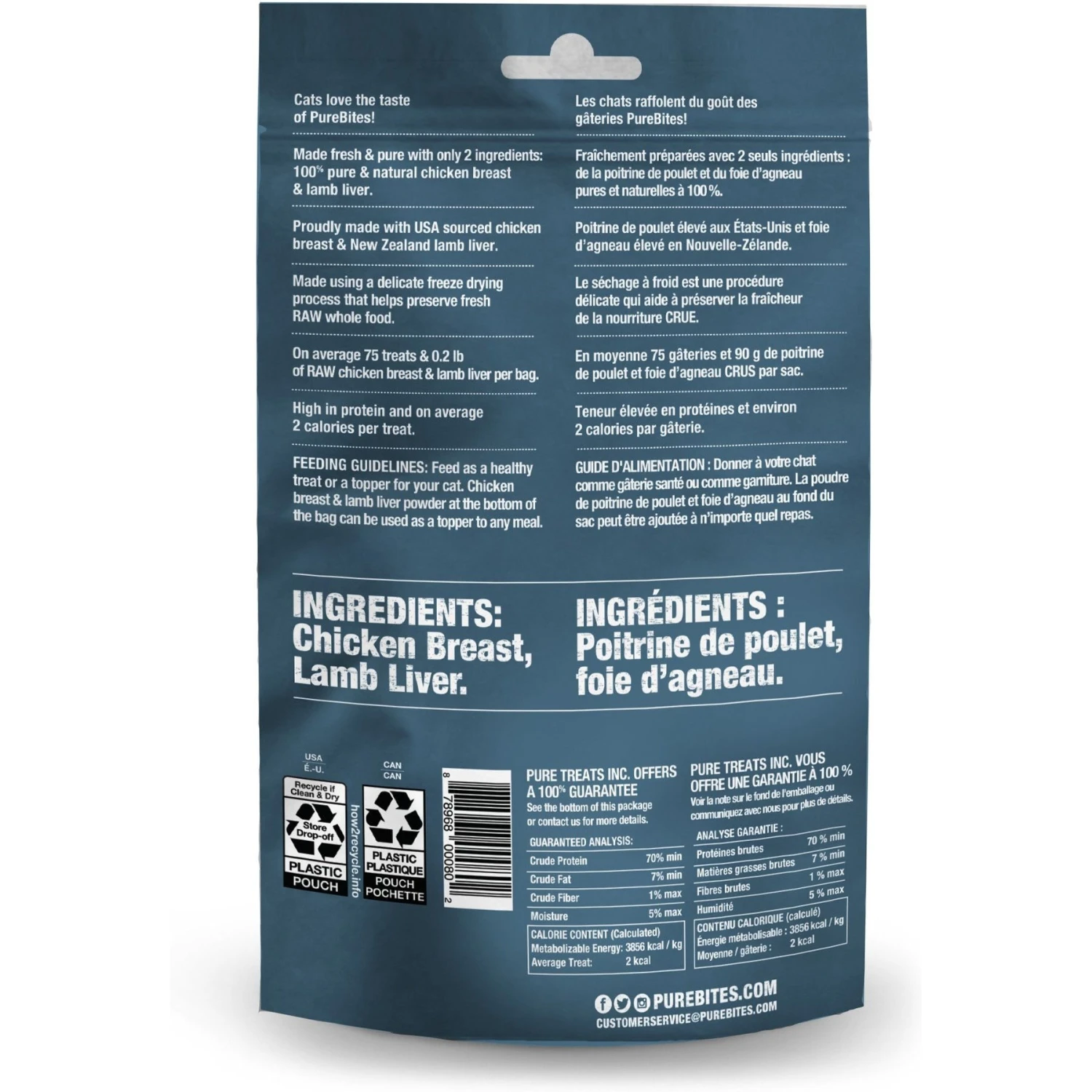 - Tasty treats made with just 2 ingredients – human grade chicken breast and New Zealand lamb liver.
