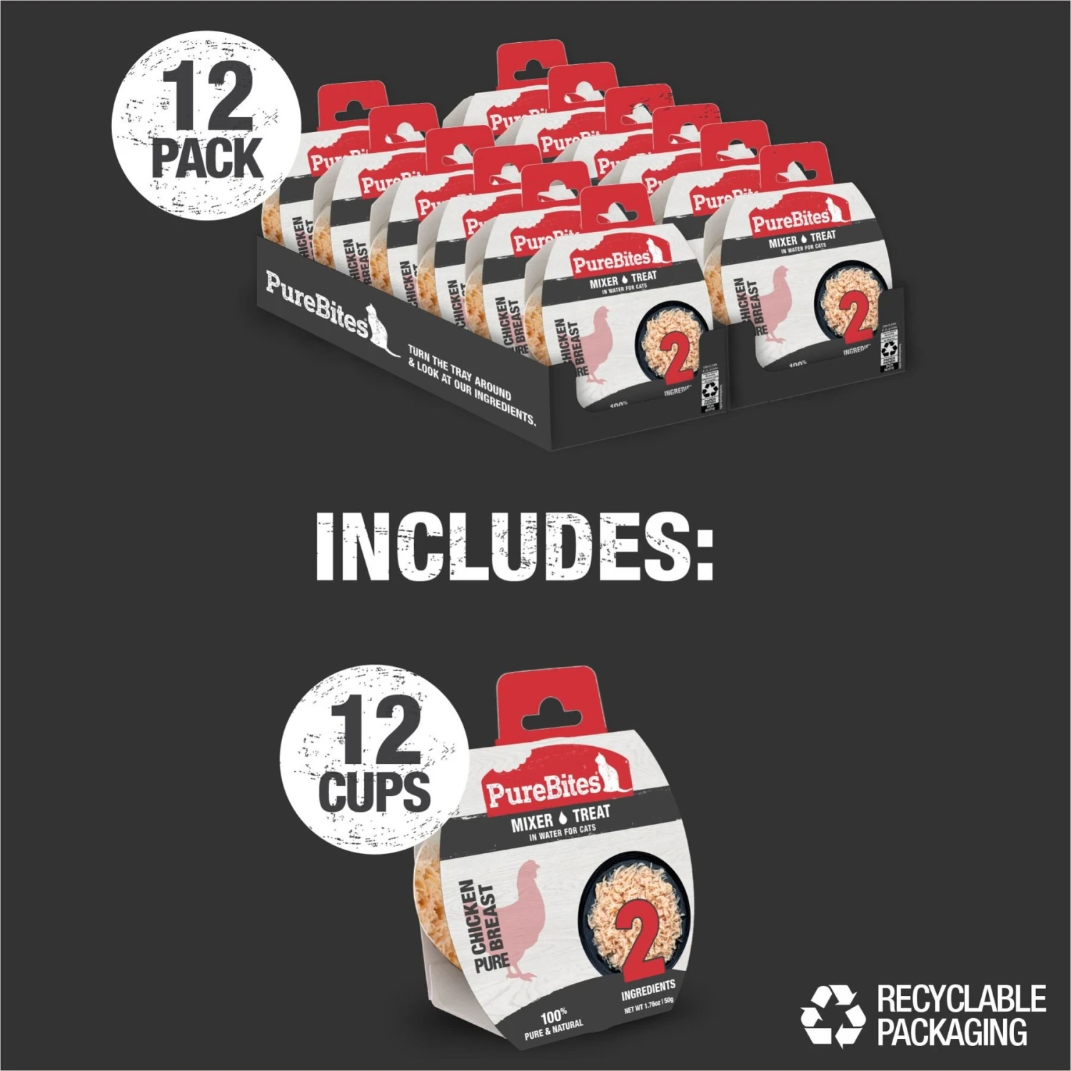 Made with just one ingredient, PureBites Mixers 100% Chicken Breast in Water Grain-Free Cat Food Trays are tasty, nutritious and fresh. Pure chicken breast is high in protein, and added water helps to keep your furbaby hydrated. You can feed this versatile food in many ways – feed it as a treat, an appetizer, a mixer or a topper to make dry food more appealing to picky kitties. Each tray is just 30 calories, purr-fect for cats who need to lose a little weight. This grain-free food is also ideal for kitties who are diabetic, have allergies, have gastrointestinal disorders or are on a restricted diet.