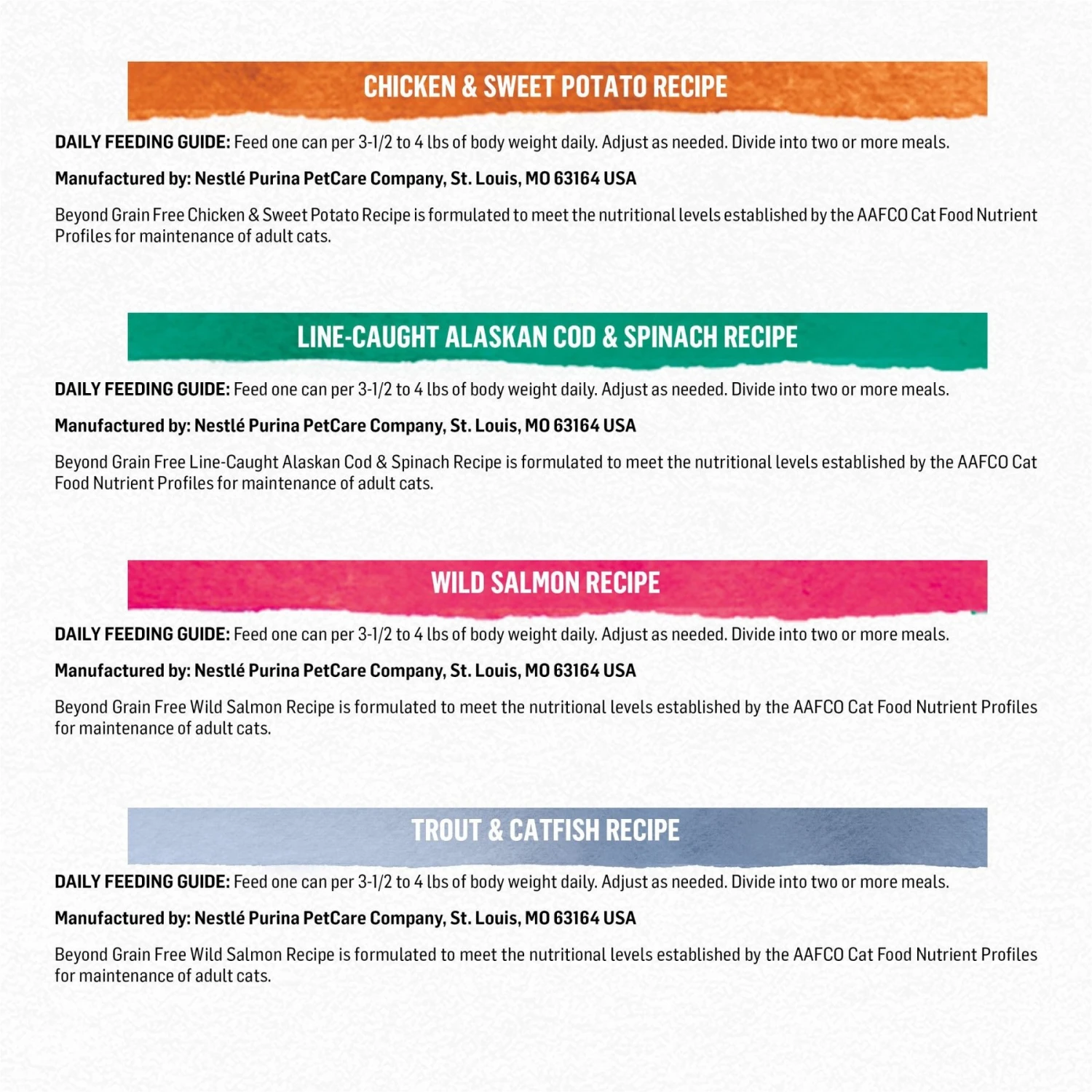 Give your purring pal the nutrition she needs with Purina Beyond Grain Free Wet Cat Food Pate Variety Pack! These natural, grain-free recipes are purr-pared with protein-rich chicken or fish as the first ingredient. They feature wholesome vegetables, vitamins, minerals and nutrients. It’s also free from corn, wheat, soy, poultry byproduct meal, artificial colors, flavors and preservatives. Even the most finicky feline will me-wow at the delectable taste, and you can rest easy knowing you’re giving her a fur-esh, high-quality meal!