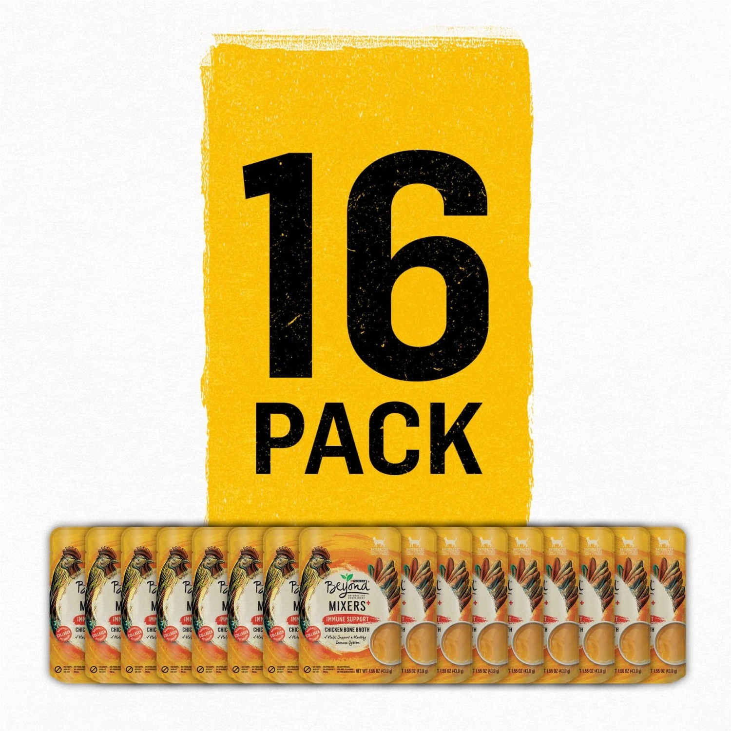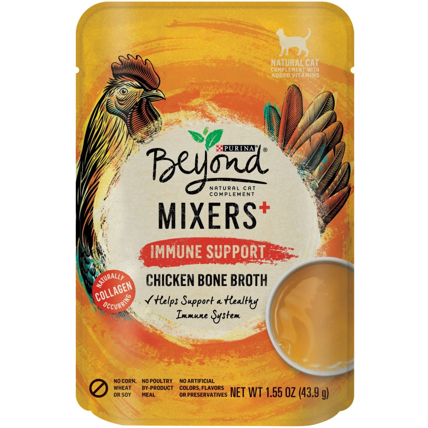 Your paw-tner will lick his whiskers once he gets a taste of Purina Beyond Mixers Immune Support Chicken Bone Broth! This wet cat food complement is a tasty liquid topper that’s crafted with naturally occurring collagen and added vitamins to support your sidekick’s immune system. Plus, it’s made with real chicken bone broth for that drool-worthy taste your feline friend won’t be able to turn down. And you can rest easy knowing that it’s completely free from artificial colors, flavors and preservatives and also from corn, wheat and soy! Simply open up one of the easy single-serve pouches and pour it over or mix it in with his dry or wet food for a punch of flavor and nutrition.