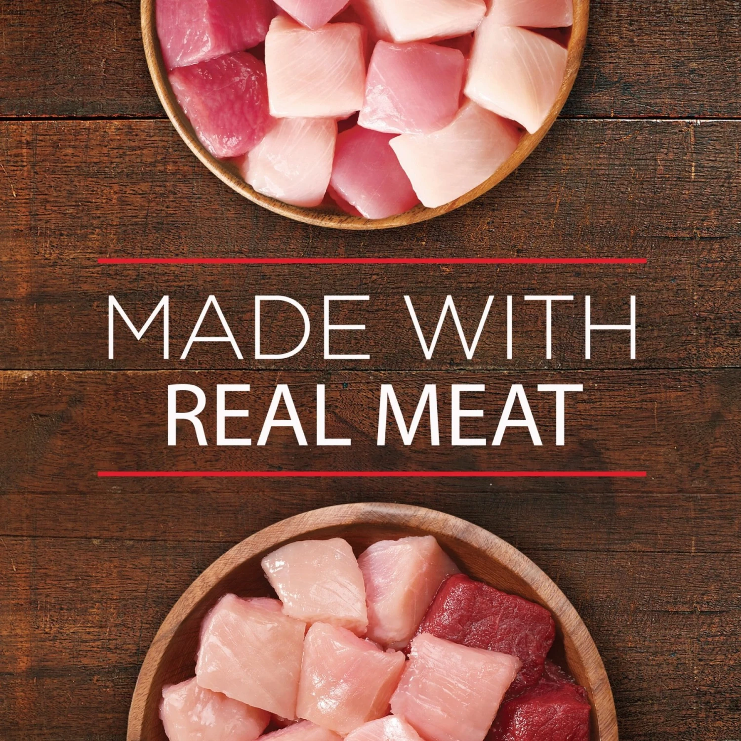 Give your pooch an assortment of options at mealtime with this Purina ONE Natural True Instinct Tender Cuts in Gravy Adult Wet Dog Food Variety Pack with added vitamins, minerals and nutrients. Both of the natural Purina ONE dog food recipes feature real poultry along with other high-quality ingredients you can feel good about giving to your canine companion. The tender, meaty texture gives him something to sink his teeth into, and a rich dog food gravy balances out each of these delicious meals. These high protein dog food formulas are made with no poultry by-products and no artificial flavors or preservatives. With 100% complete and balanced nutrition for your adult dog’s nose-to-tail well-being, this soft dog food is a convenient way to satisfy his nutritional needs. Alternate between these two Purina ONE canned dog food entrees for variety in your dog’s daily diet, and show your furry friend just how much you care about his health and happiness with every delectable bite.
