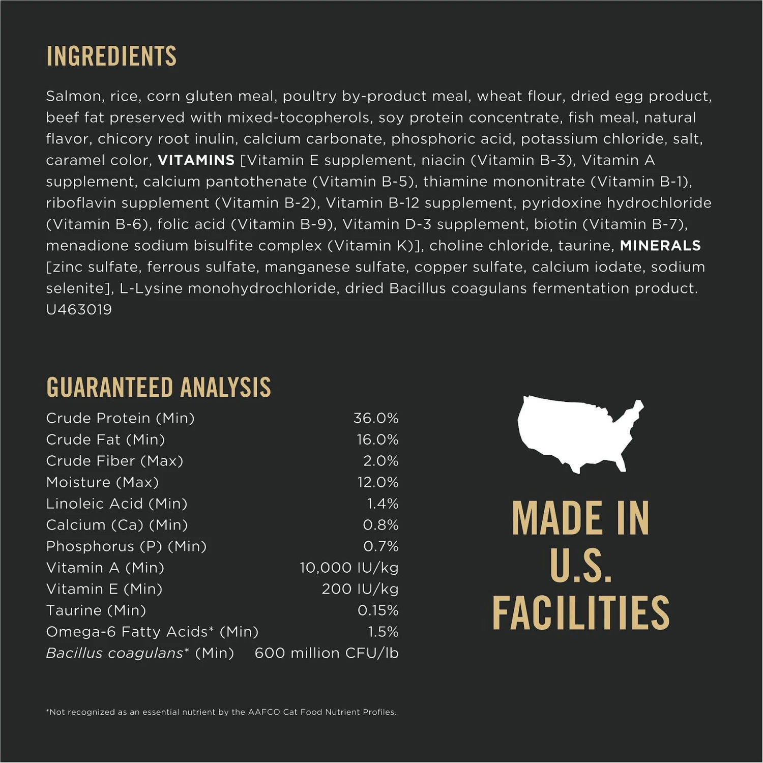 - High protein formula with real salmon as the first ingredient