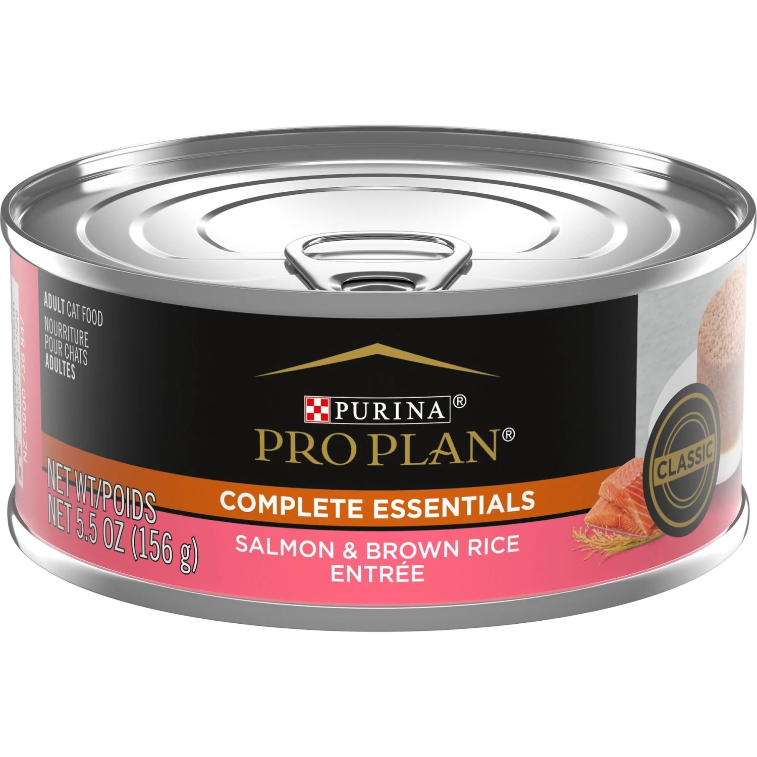This item used to be known as Purina Pro Plan Savor. Support your kitty from nose to tail with Purina Pro Plan Complete Essentials Salmon and Brown Rice Entree Adult Wet Cat Food. This premium cat food is made with real salmon plus brown rice for a taste that brings cats running. Pro Plan carefully chooses every high-quality ingredient for a specific purpose and includes absolutely no artificial colors or preservatives, giving you meals you can both love. Every serving is also loaded with 25 essential vitamins and minerals and delivers 100 percent complete and balanced nutrition for adult cats like yours. Even better, antioxidants in the salmon cat food help support her healthy immune system, and omega-6 fatty acids and vitamin A nourish her skin and coat. Plus, the salmon pate cat food has a high protein level to help her keep up an ideal body condition. Delight your favorite feline with this Purina Pro Plan Complete Essentials canned cat food every day, and give her outstanding nutrition and exceptional yum every time you fill her dish.