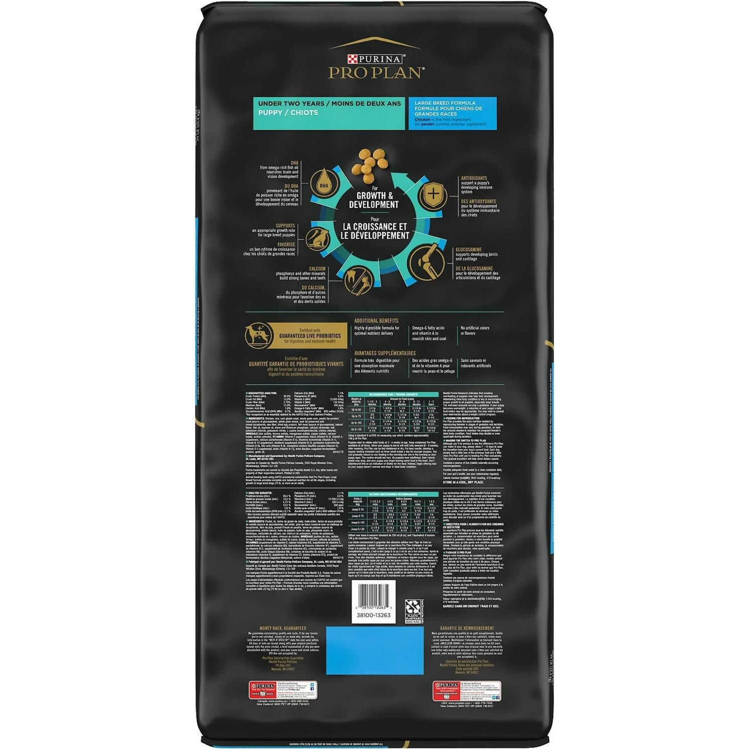 This item used to be known as Purina Pro Plan FOCUS. As this item transitions, you may receive either bag. Feed your furry friend with a balanced diet and treat them to Purina Pro Plan Puppy Large Breed Chicken & Rice Formula with Probiotics Dry Food + American Journey Beef Recipe Grain-Free Soft & Chewy Training Bits Dog Treats! Your pup might be petite now, but he won’t be for long! You can help him grow big and strong with Purina Pro Plan Puppy Large Breed Chicken & Rice Formula with Probiotics Dry Dog Food. Carefully designed for our larger fur-iends who will be over 50 pounds once mature, it provides the essential nutrients he needs in his biggest growing stage. Chicken is the first ingredient, delivering plenty of the protein he requires. The addition of DHA from omega-rich fish oils helps support your furbaby’s brain and vision development. Plus, it contains live probiotics to keep his tummy happy and support his immune health. Once he’s done chowing down, reward your sidekick with a chewy, tasty treat that’s just the right size for training. American Journey Soft & Chewy Training Bits are moist, soft bites that are crafted with real beef as the first ingredient for the taste dogs crave. At only four calories per treat, they’re perfect for all your training sessions, or as a portable, protein-rich snack for the road or trail. And if you’re wondering what else goes into these delicious treats besides real protein, you can feel good knowing it’s easily digestible, wholesome ingredients like peas, sweet potatoes and chickpeas. Plus, they’re a source of omega fatty acids from flaxseed and salmon oil, to support a healthy skin and coat.
