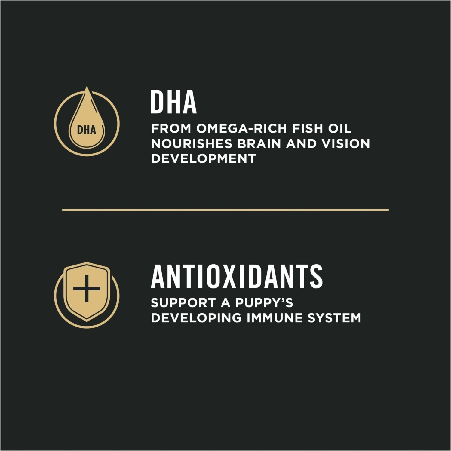 Give your puppy the specialized nutrition he needs in his first year of life with Purina Pro Plan High Protein Small Breed Puppy Food DHA Chicken & Rice Formula. This protein packed dry puppy food features chicken as the first ingredient to meet the needs of your highly active pup. Every ingredient is carefully selected for a specific nutritional or functional purpose and there are no artificial colors or flavors. The highly digestible formula promotes nutrient availability and absorption, while the bite-sized kibble is easier for your little guy to chew. Formulated for puppies that will weigh under 20 pounds at maturity.