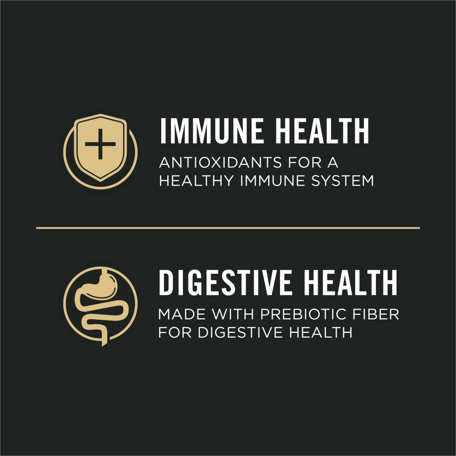 - High-protein cat food featuring vitamins for healthy cats to support immune health, omega-3s for kidney health, choline for brain health, plus prebiotic fiber for digestive health.