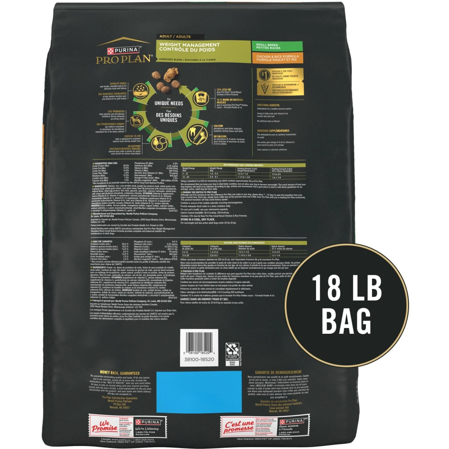 - A high-protein food with 15% less fat than regular Pro Plan Small Breed Shredded Blend Chicken & Rice Formula.
