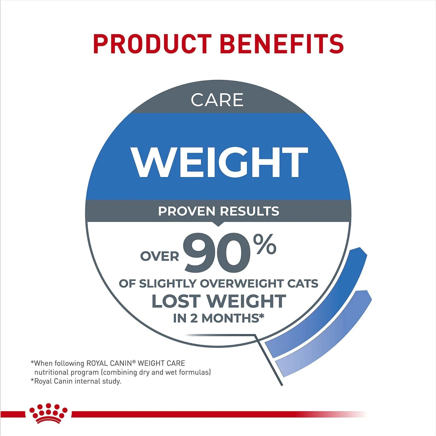 Created with your cat’s weight management in mind, Royal Canin Feline Weight Care Thin Slices in Gravy Adult Wet Cat Food helps slightly overweight cats achieve an ideal weight in a delicious soft, wet formula. With a precise balance of vitamins and minerals, it can help maintain optimal health and wellness. To enhance mealtime palatability, this wet cat food can be paired with Weight Care dry cat kibble. It’s formulated for cats with a body condition score of 4, 5, or 6 out of 9, to help provide muscle support and a more ideal body condition. If you need to schedule your cat’s yearly annual exam, you’re concerned that she may have a body condition score of 7 out of 9 or above, or you have any other questions about her health, consult your veterinarian.