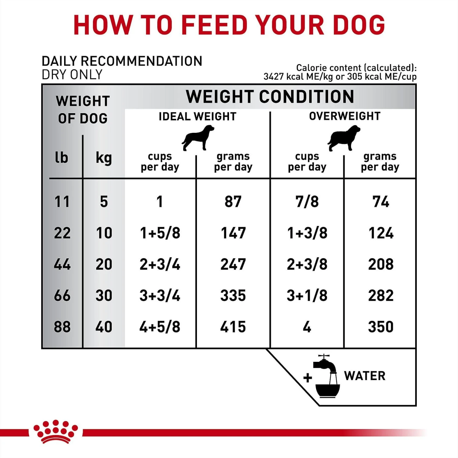 Royal Canin Veterinary Diet Gastrointestinal Moderate Calorie Dry Dog Food is a highly palatable diet for dogs with digestive sensitivities and lower energy needs. It is also formulated with highly digestible proteins, enhanced omega-3 fatty acids like EPA and DHA, and a fiber blend to support digestive health. The fiber blend includes highly fermentable prebiotic fibers to help support the microbiome and less-fermentable fibers to support stool quality and regularity. Less calorie content helps your dog maintain a healthy weight. Plus, the highly palatable dog kibble helps satisfy decreased appetites.