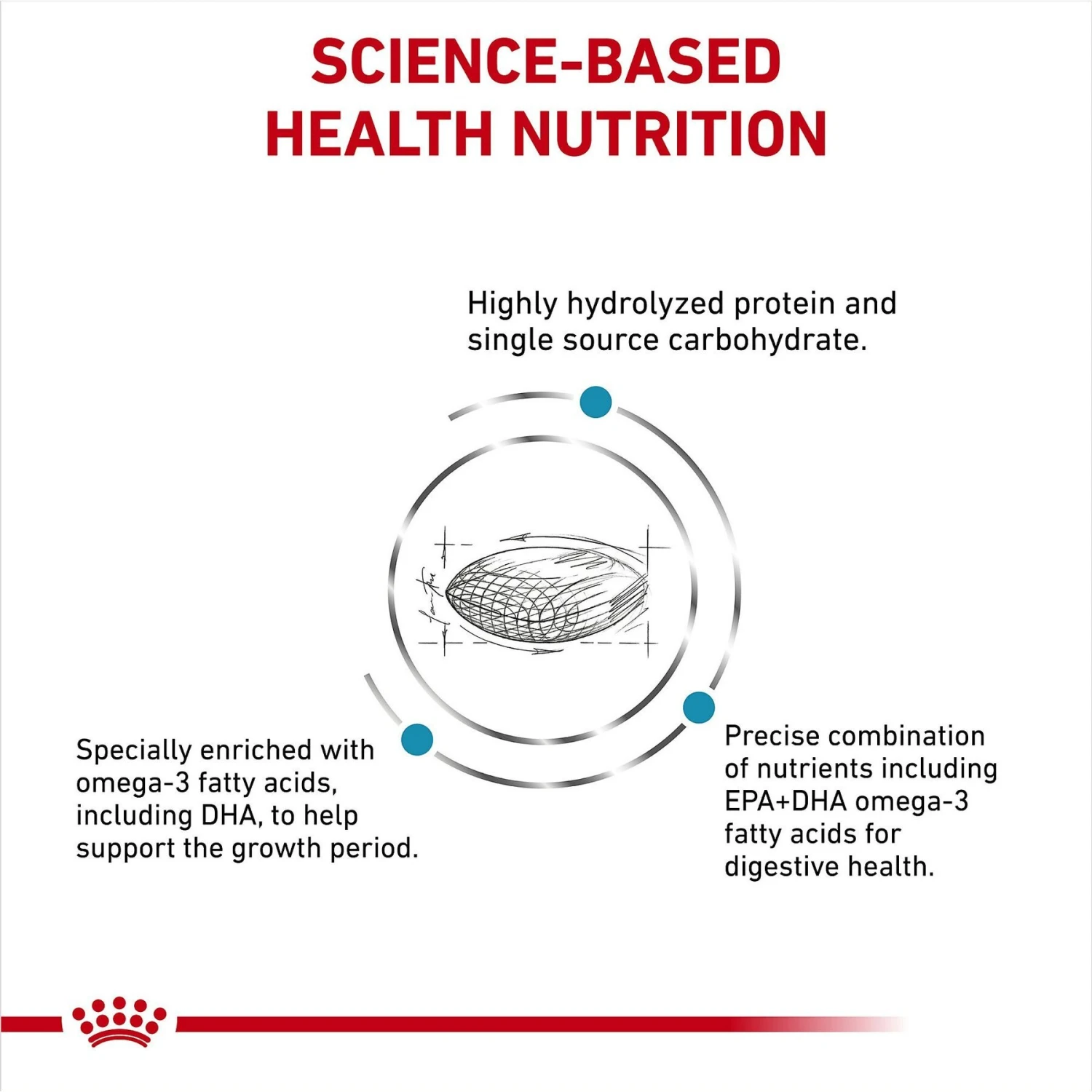 - Royal Canin Veterinary Diet Hydrolyzed Protein Puppy Dry Dog Food is suitable for all breeds, and importantly, is designed for puppies that have a food sensitivity.