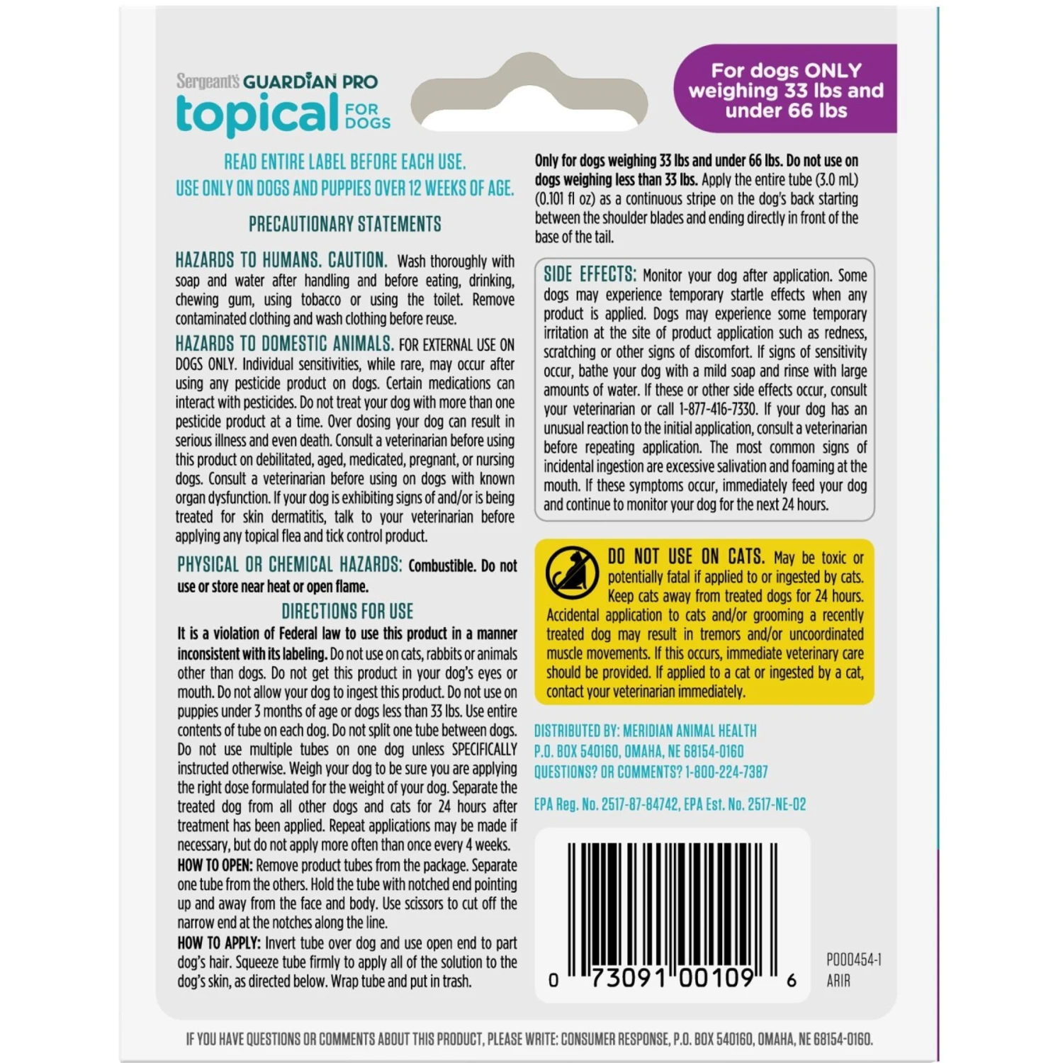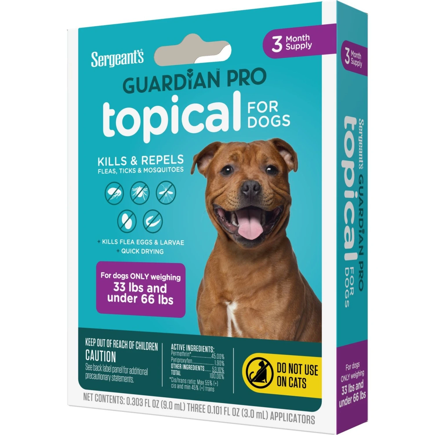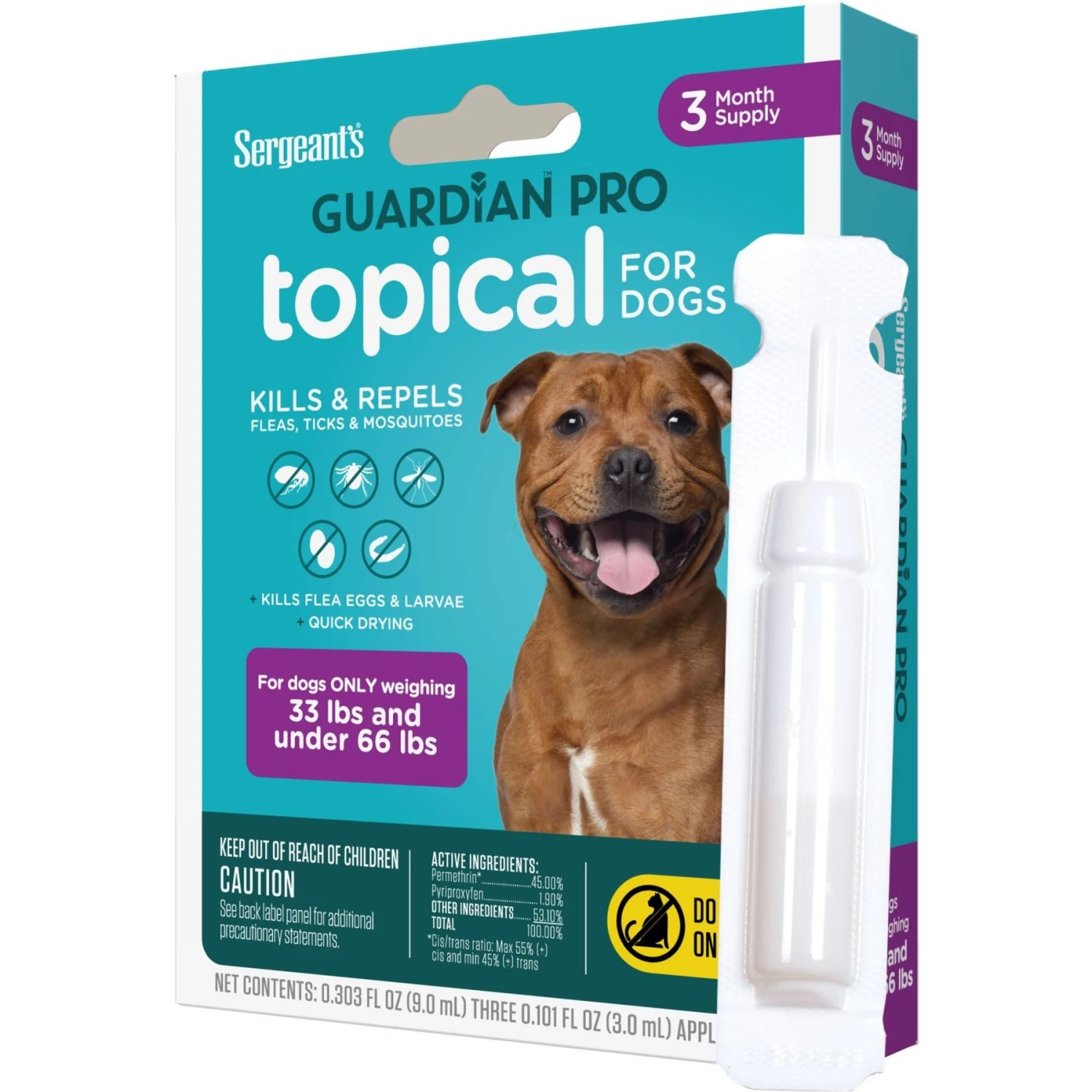 Keep your barking bestie free from pesky insects with Sergeant’s Guardian Dog Pro Flea & Tick Topical Treatment! This handy topical treatment is specifically formulated to kill fleas, ticks, eggs and larvae and help prevent reinfestations for up to 30 days. It’s also designed to repel mosquitoes for up to four weeks. This easy-to-use ointment is sure to keep your paw-some pup happy, healthy and itch-free!