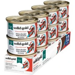 Give your kitten the solid nutrition he craves with the Solid Gold Flavorful Feast Kitten Recipe with Chicken Pate Grain-Free Canned Cat Food. This classic pate is formulated with lean protein from real chicken as the first ingredient to support healthy growth, plus wholesome veggies like carrots, pumpkin, sweet potatoes and spinach. With no grains or gluten and enhanced with taurine, vitamins and minerals, plus tuna oil for healthy fatty acids, it provides a holistically formulated and complete diet for growing kitties. It’s also a great source of water to add much-needed hydration that’s also purrfectly delicious.