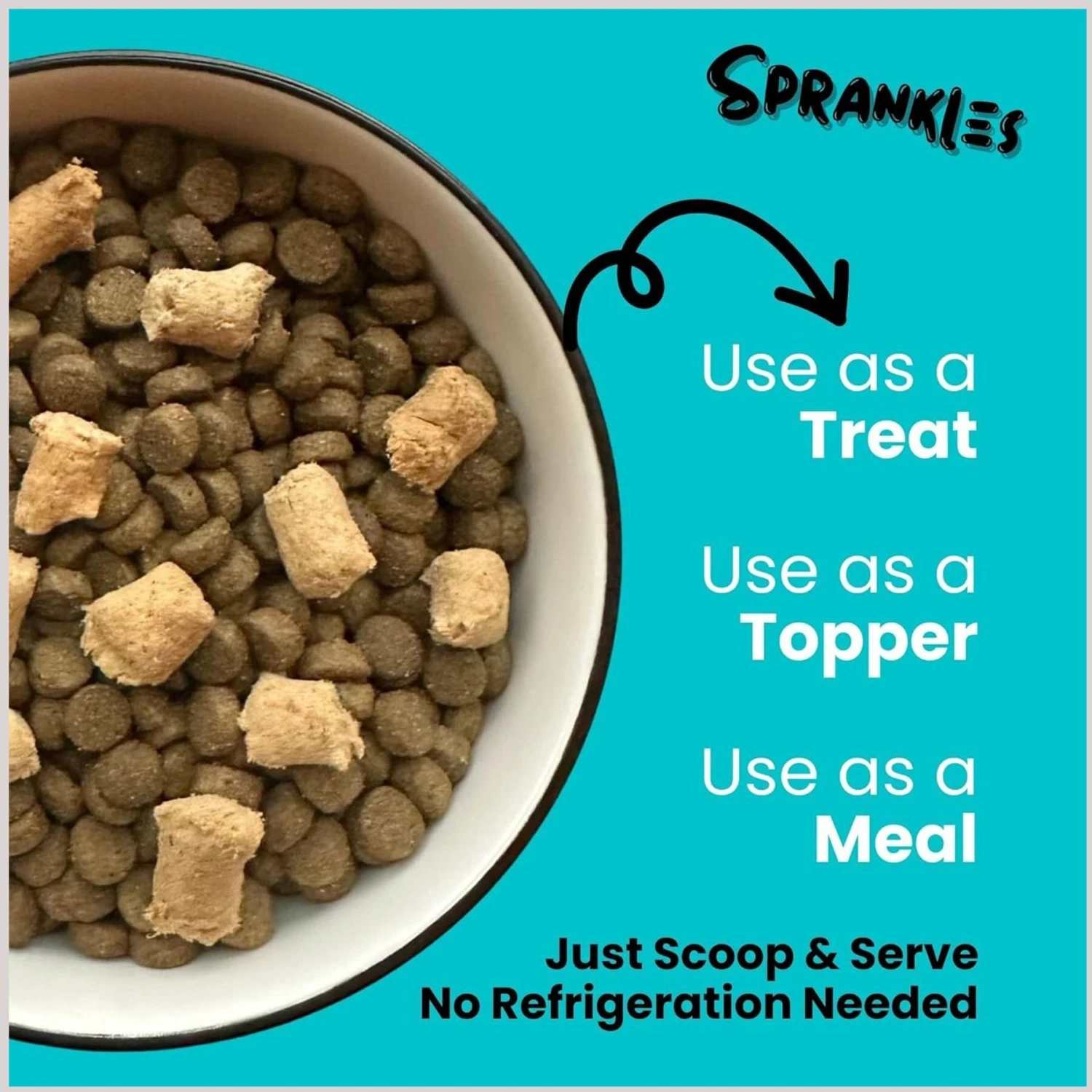 Give your pooch nutrition as nature intended with Sprankles Beef Recipe Freeze-Dried Raw Dog Food! It’s made in the USA from single-source protein meat. Created grain free without corn, wheat or soy, it helps your food-sensitive fur-iend avoid fillers that might upset his stomach. Crafted with 96% beef, organs and bone, including beef tripe and beef heart, your dog is sure to love this deliciously nutritious food. Complete, balanced and easy-to-serve, it’s also paw-fect for your pal with food allergies and a paw-some way to introduce raw food filled with protein, fat and nutrients into your dog’s diet as a treat, topper or meal.
