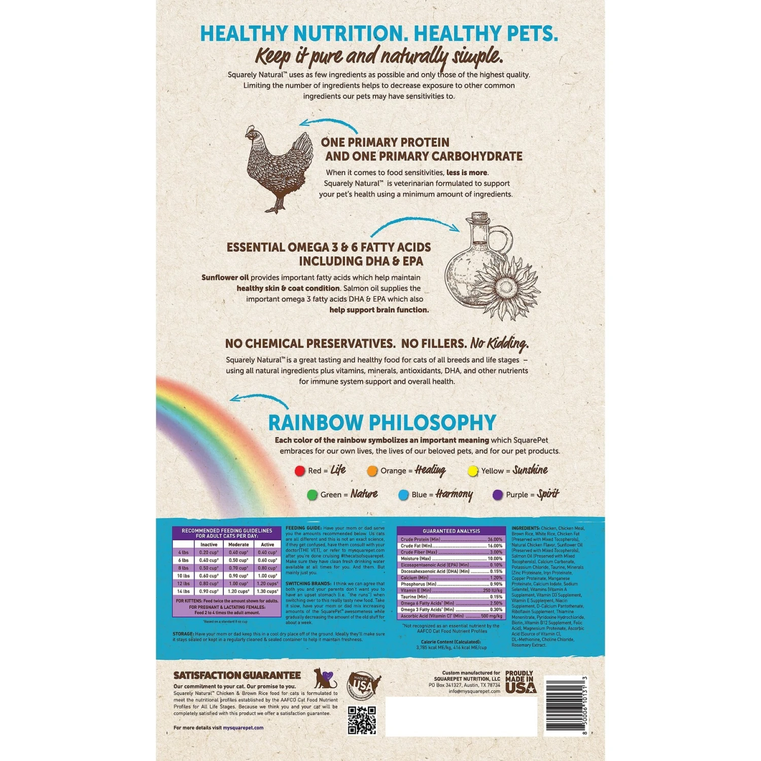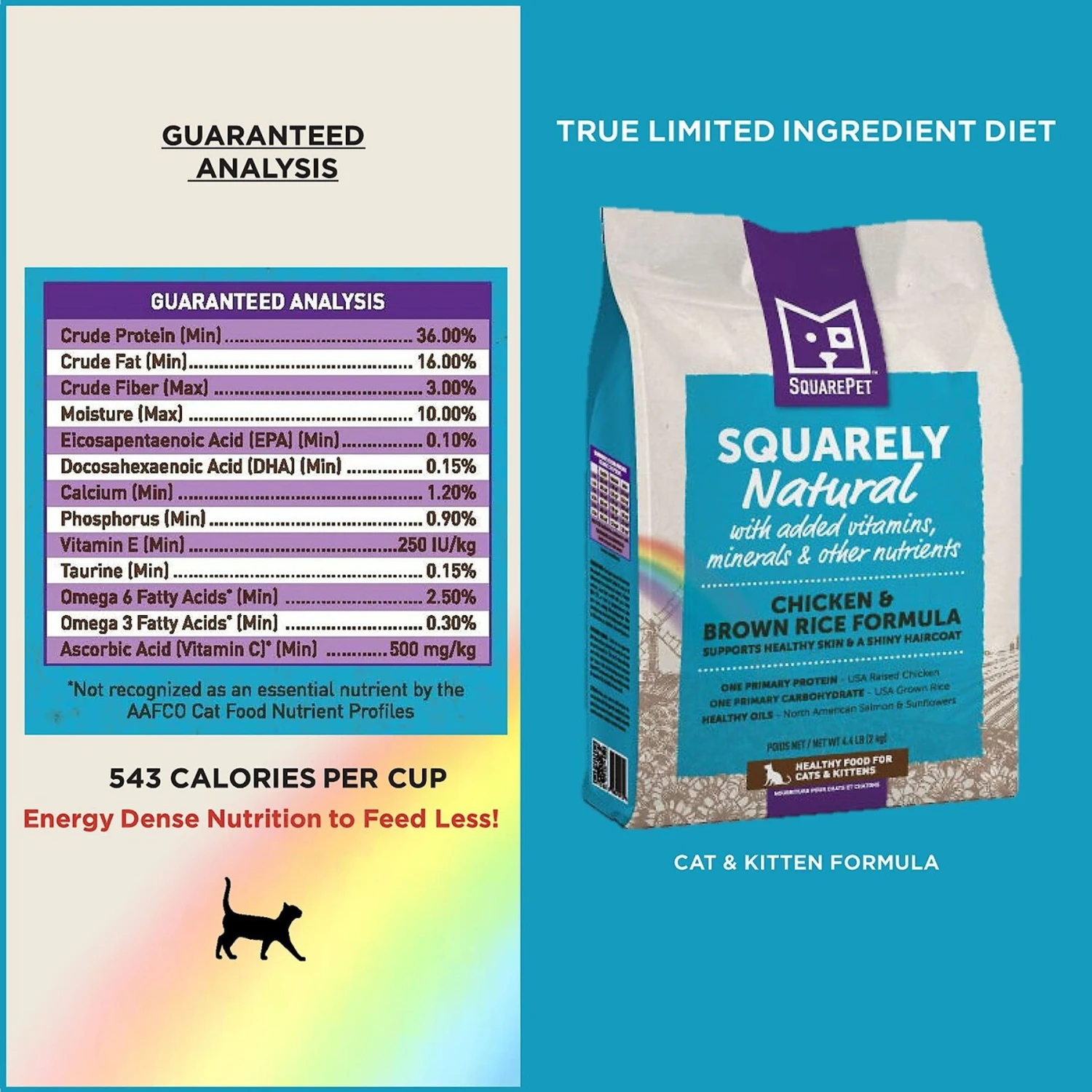 Soothe sensitive tummies during mealtime with SquarePet Squarely Natural Chicken & Brown Rice Dry Cat Food. This intolerance-friendly kibble is crafted with irresistible cage-free chicken, rice, and cold-pressed sunflower oil—all of which all of which support your pup’s health when there’s a limit on what she can eat. Omega 6 fatty acids and vitamins C and E promote overall wellbeing and a healthy immune system, as well as healthier fur and skin. Plus, you won’t find any artificial ingredients in this nutritious meal, so you can truly encourage the full and satisfied diet of your pet’s dreams!