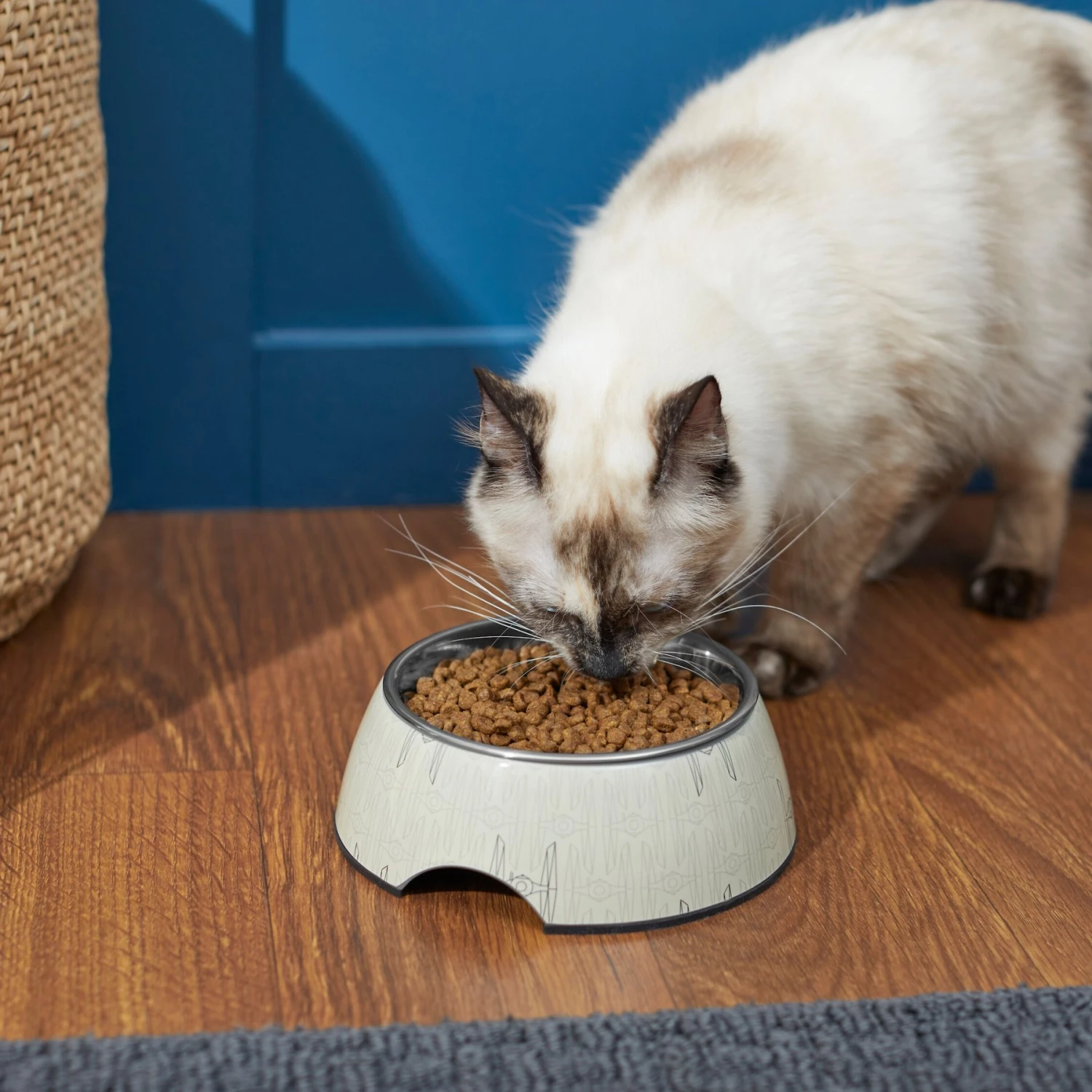 For a furry Star Wars™ superfan, there’s not a better bowl in the whole galaxy! With a gray melamine stand featuring a cool, monochromatic Tie Fighter™ design, this bowl, available only at Chewy, elevates the look of your pet’s place setting. But it’s not just cute and full of Star Wars fun! The stand has a non-skid base to hold their bowl in place, which helps cut down on mealtime messiness. When it’s time to clean up, this bowl is a breeze— just pop the bowl and stand into your dishwasher’s top rack.
