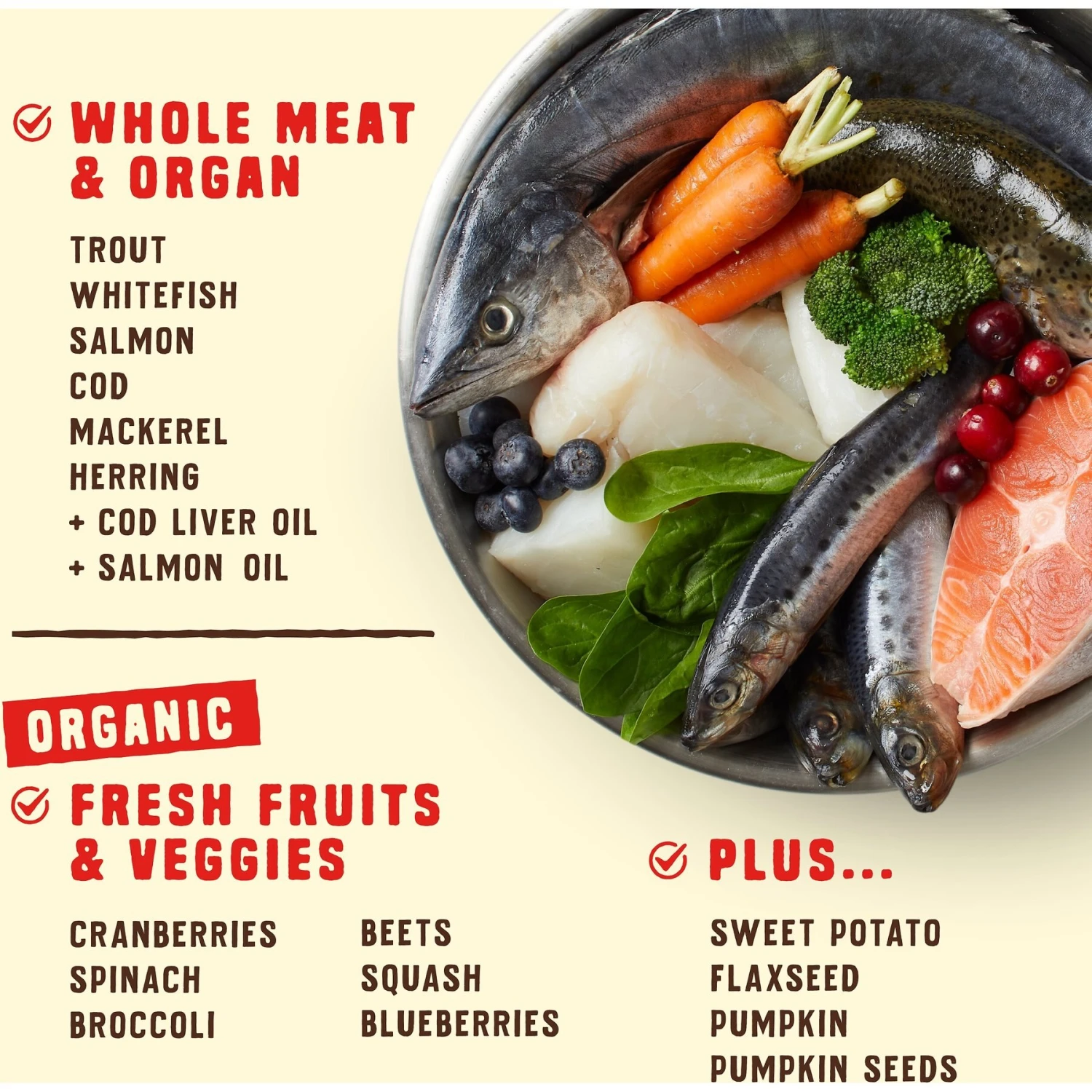 - Packed full of protein with trout, whitefish, salmon, cod, mackerel, and herring.