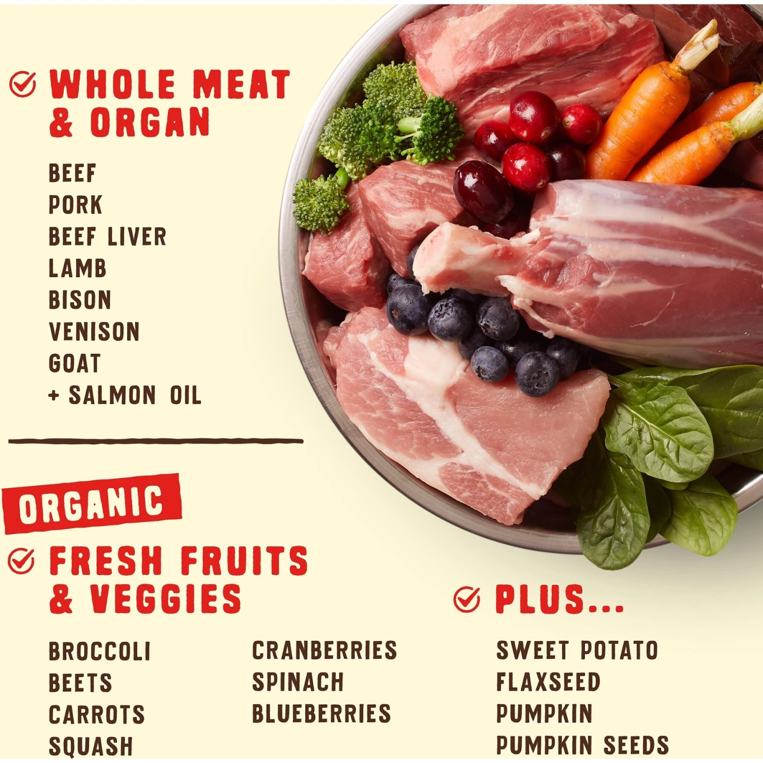 - Packed full of protein with beef, pork, lamb, bison, venison, and goat.
