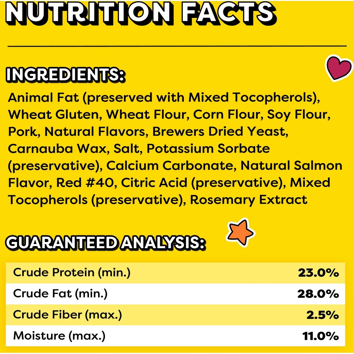 Snack time might just change fur-ever with Temptations Tender Fills Grilled Salmon Flavor Soft & Crunchy Cat Treats! Purr-fect for your feline friend, Temptations Tender Fills feature a crunchy treat exterior and a creamy center. Try this salmon-flavored treat to shake up the routine for your furry friend. Made with tasty real meat and no artificial flavors, they provide an exciting way to introduce something worth savoring into your feline’s diet. Use them to reward good behavior or just add a moment of joy to the life of your favorite kitty.