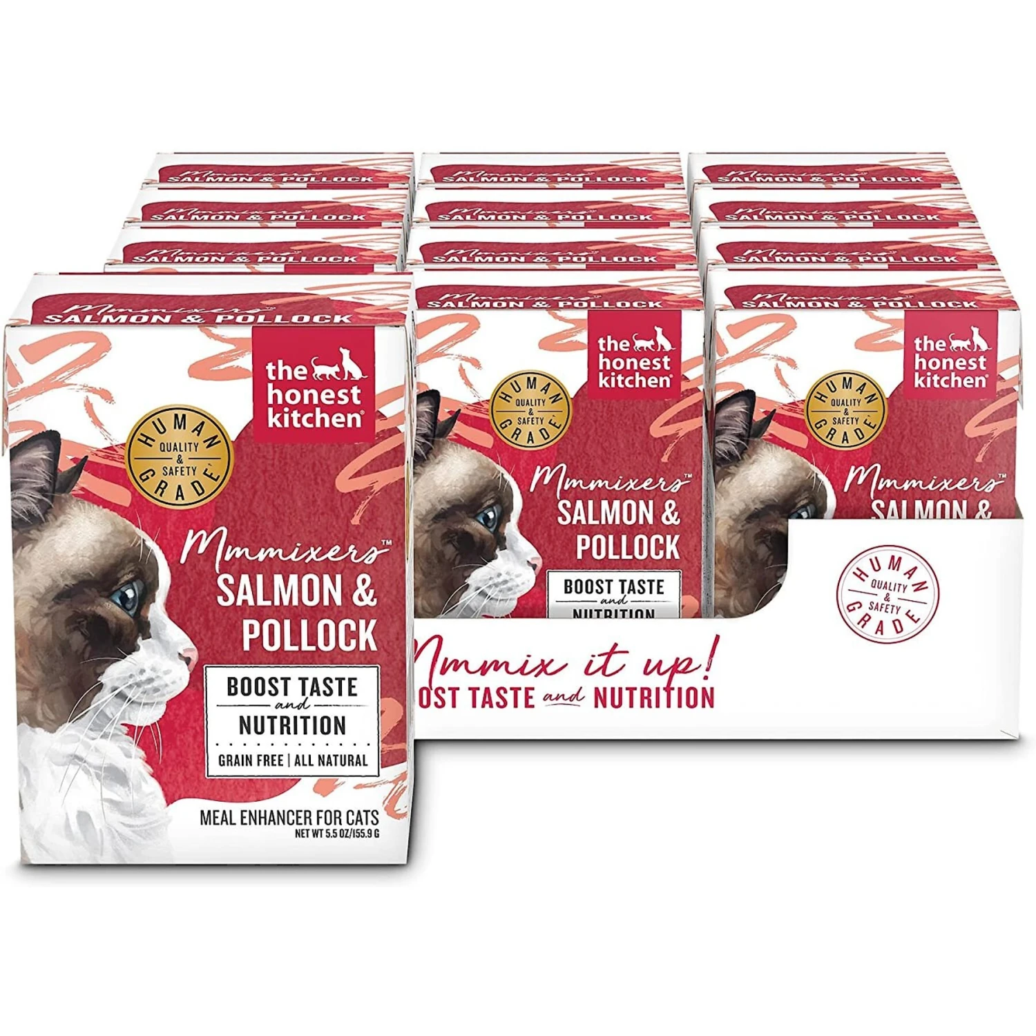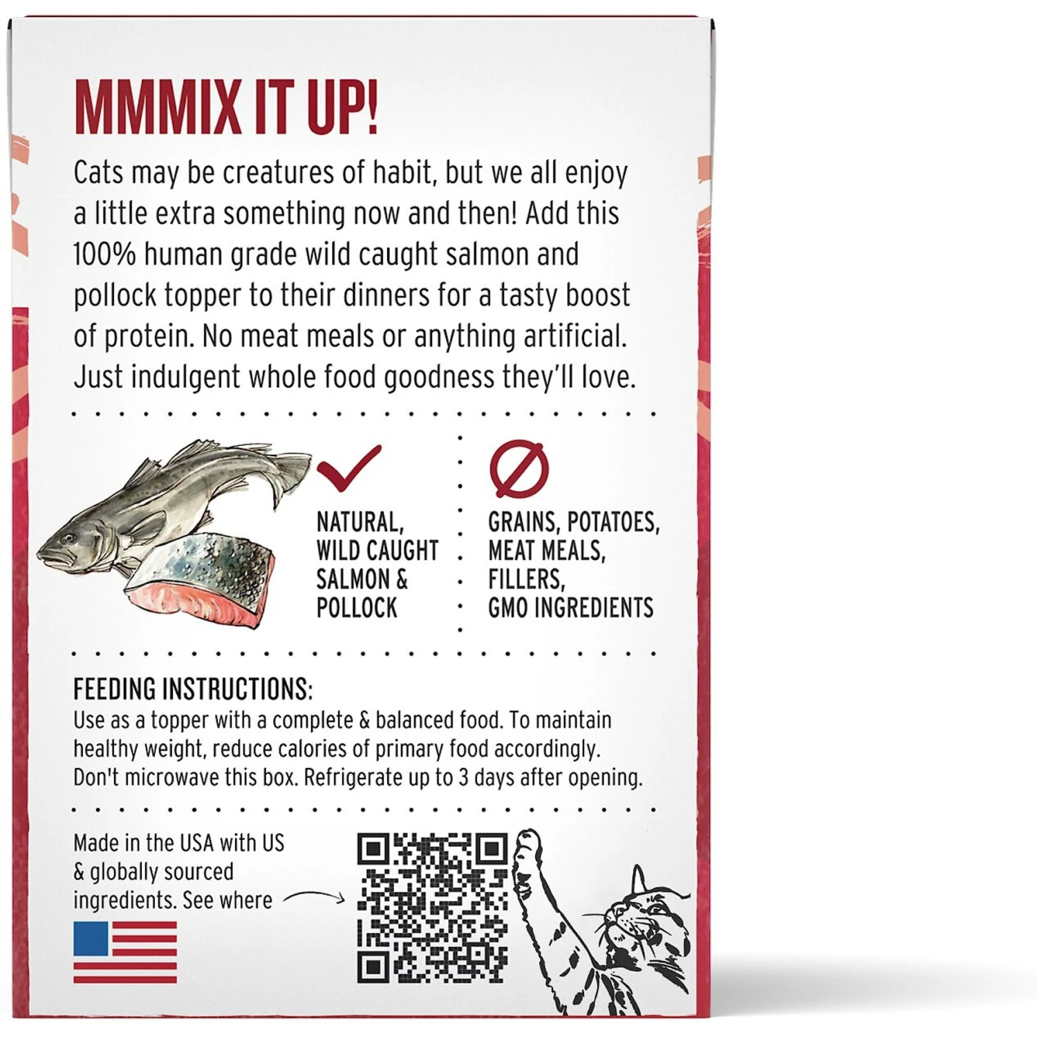 Give your kitty the nutrition she needs with The Honest Kitchen Mmmixers Salmon & Pollock Cat Food Topper! This grain- and filler-free recipe is purr-pared with 100% human-grade wild-caught salmon and pollock to maintain appropriate nutrients, protein levels and crave-worthy taste. Serve as a tasty treat, place this delectable topper on top of food, or mix it in for an added boost of flavor. Even the most finicky feline will me-wow at the so-fish-ticated taste, and you can rest easy knowing you’re giving her a fur-esh, high-quality meal!