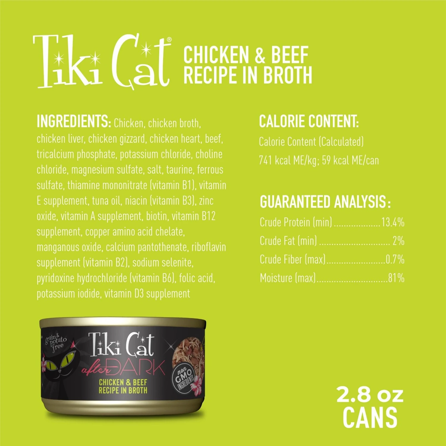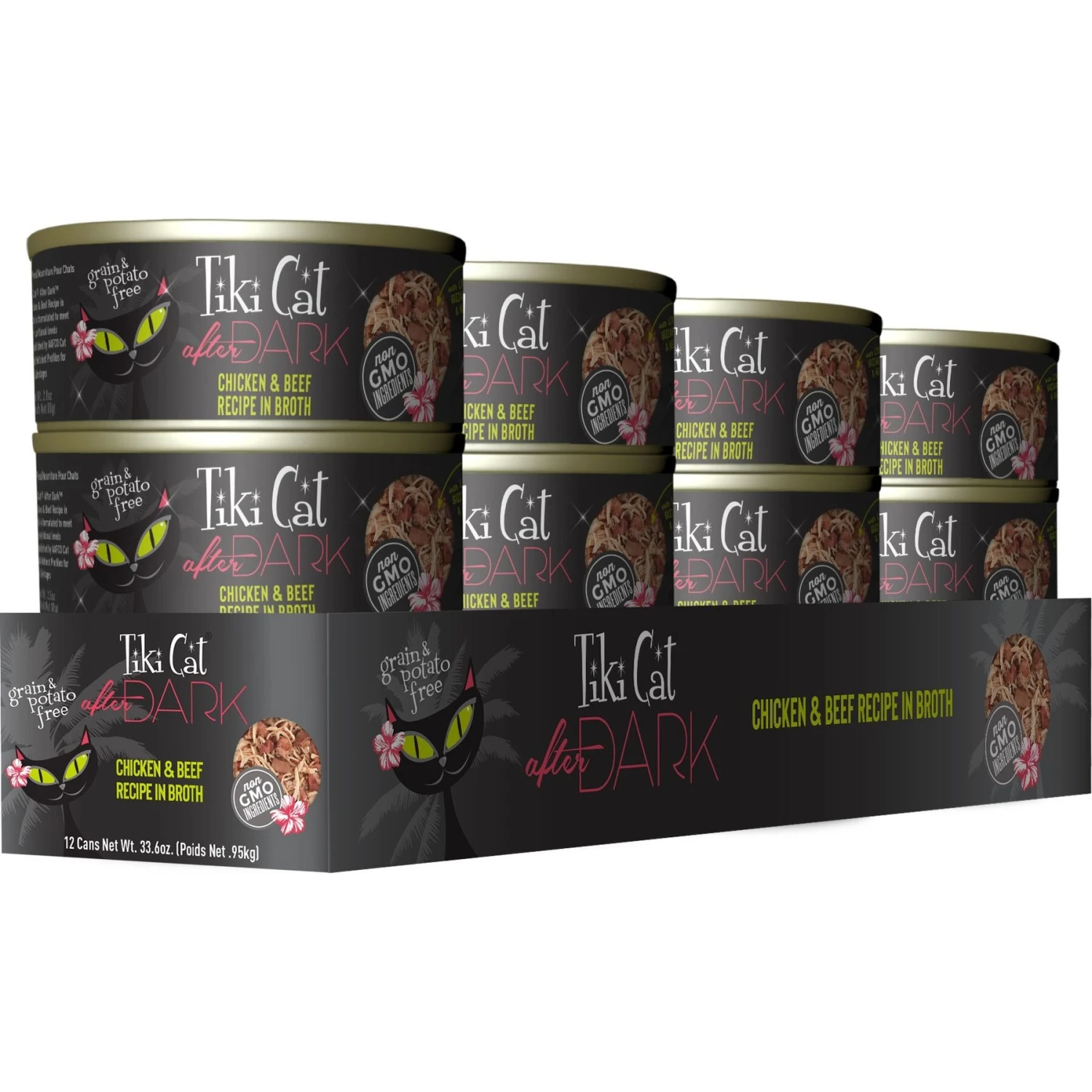 Your little carnivore craves meat when the lights go down―and pretty much any other time―so give him the meaty nutrition of the Tiki Cat After Dark Chicken & Beef Canned Cat Food. It’s formulated with chicken, chicken liver, chicken gizzard, chicken heart and beef, simmered in whisker-licking real chicken broth. Since it’s made with actual broth, it provides plenty of moisture to keep your pal hydrated and support digestive and urinary health. And it’s packed with essential vitamins, omegas, minerals and taurine so it’s a complete and balanced diet for cats of all ages, with zero grains, starches or flours and low in carbohydrates.