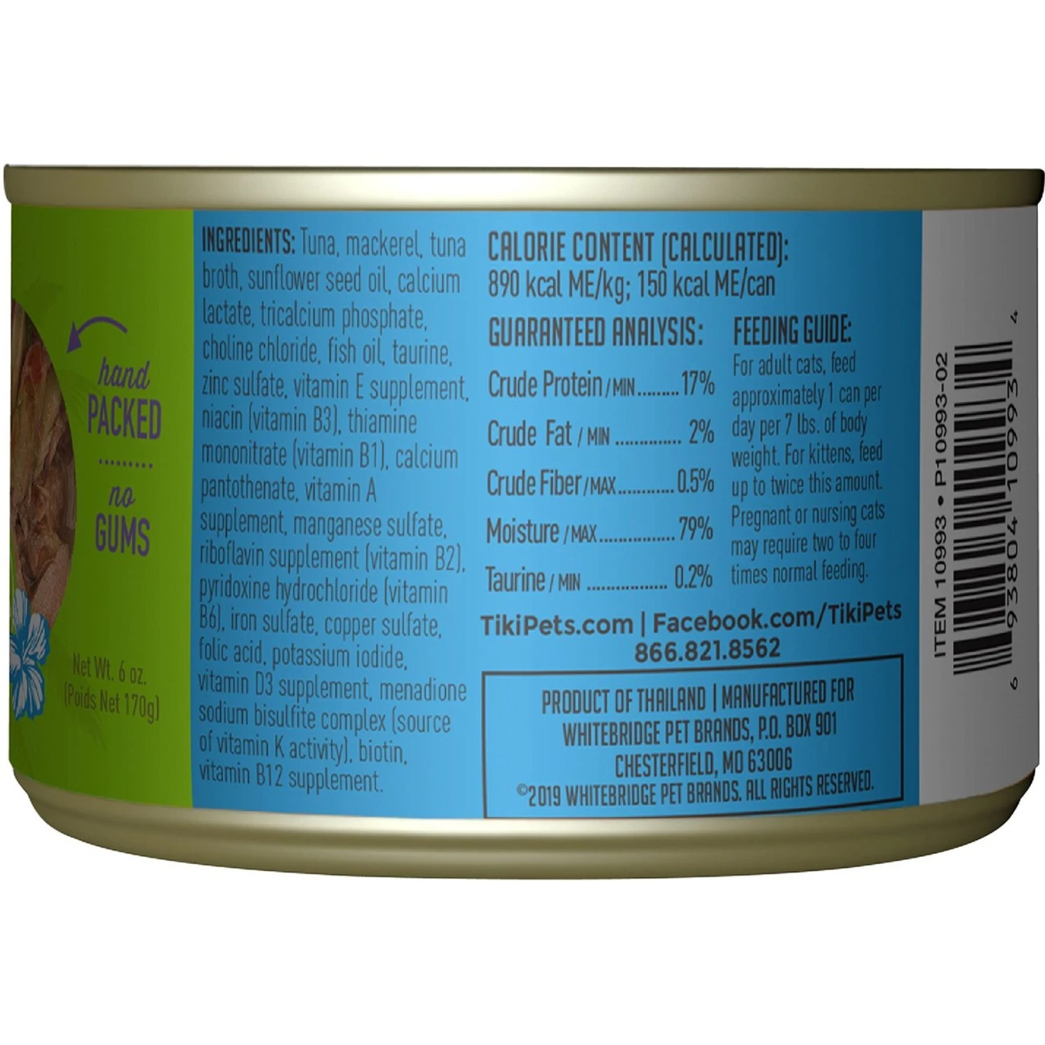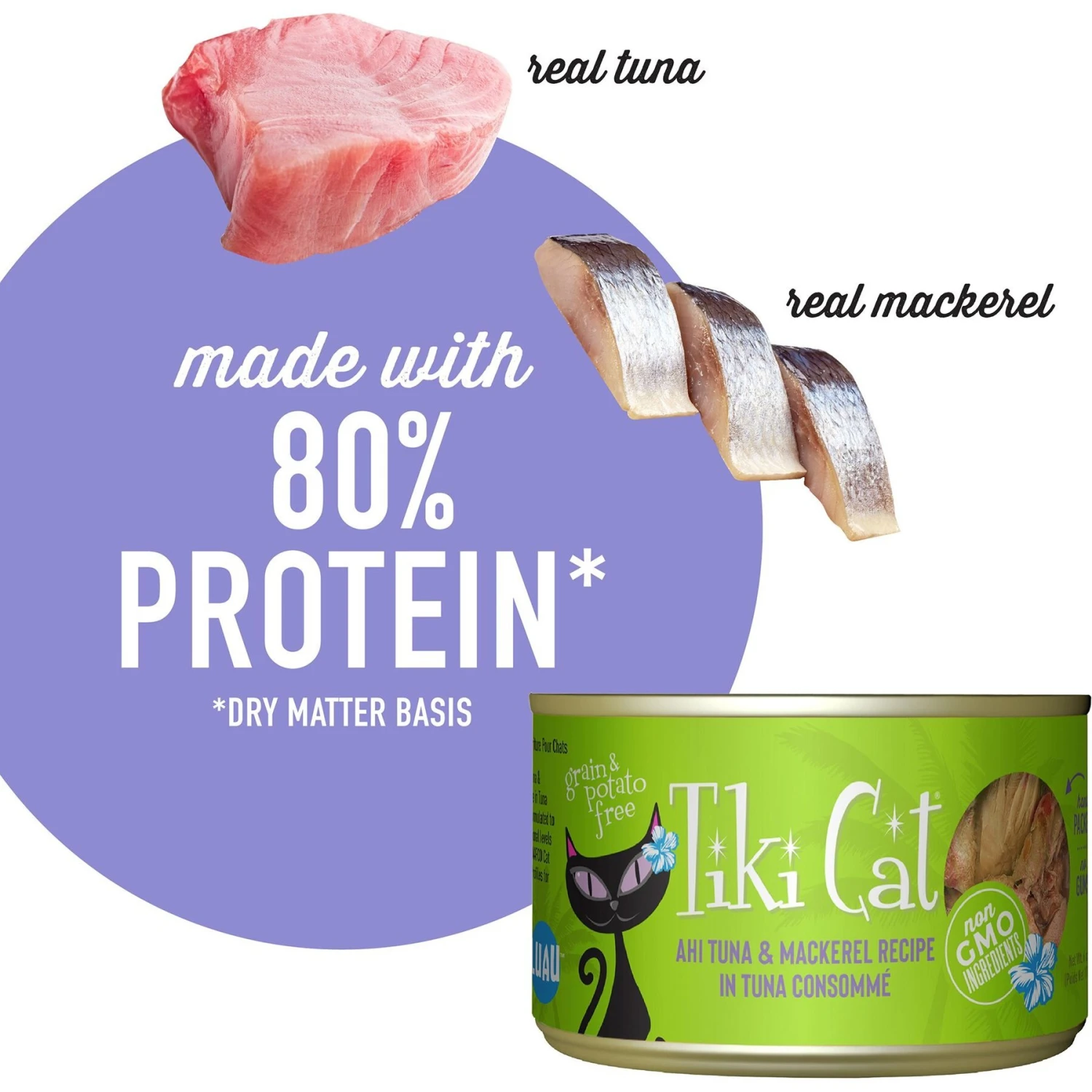 Bring some fresh-from-the-sea nutrition to your kitty’s bowl with the Tiki Cat Papeekeo Luau Ahi Tuna & Mackerel in Tuna Consomme Grain-Free Canned Cat Food. It’s a luau of flavors purr-fectly fit for your furry carnivore, with wild-caught flaked Ahi tuna and mackerel, slowly simmered in a tasty tuna consomme. Since it’s made with actual broth, it provides plenty of moisture to keep your pal hydrated and support digestive and urinary health. And it’s packed with essential vitamins, omegas, minerals and taurine so it’s a complete and balanced diet for cats of all ages, with zero grains, gluten, carbohydrates, starches or flours.