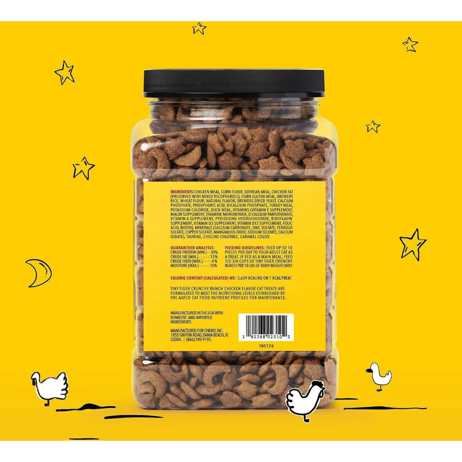 Feed your cat’s biggest dreams with Tiny Tiger Chunks in EXTRA Gravy Beef & Poultry Recipes Variety Pack Grain-Free Canned Cat Food and Tiny Tiger Crunchy Bunch, Chicken Cannonball, Chicken Flavor Cat Treats. Tiny Tiger Chunks in Extra Gravy recipes deliver the protein your mighty feline needs to perform at his best, with a variety of crave-able proteins—including real beef, chicken and turkey. It’s a complete and balanced diet in every can, and a total showstopper when it comes to flavor and nutrition. The tiny bites are made with a crunchy texture that helps scrub teeth, and a whisker-licking flavor from natural ingredients like real chicken, fish and seafood meals. There are no artificial ingredients or colors, so your kitty gets all the yummies with none of those artificial yuckies.