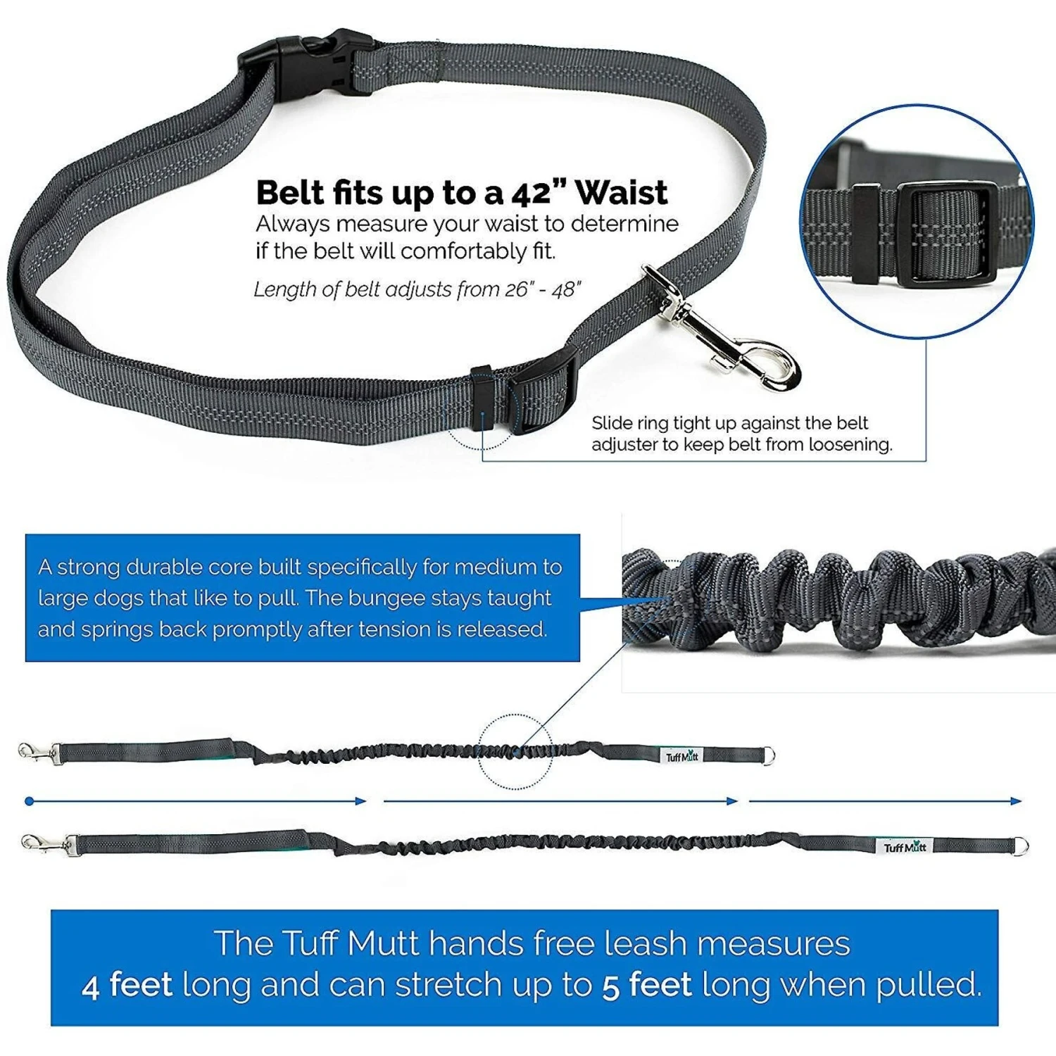 - Hands-free bungee leash features a 48-inch lead that extends up to 60 inches, and is designed to absorb shock.
