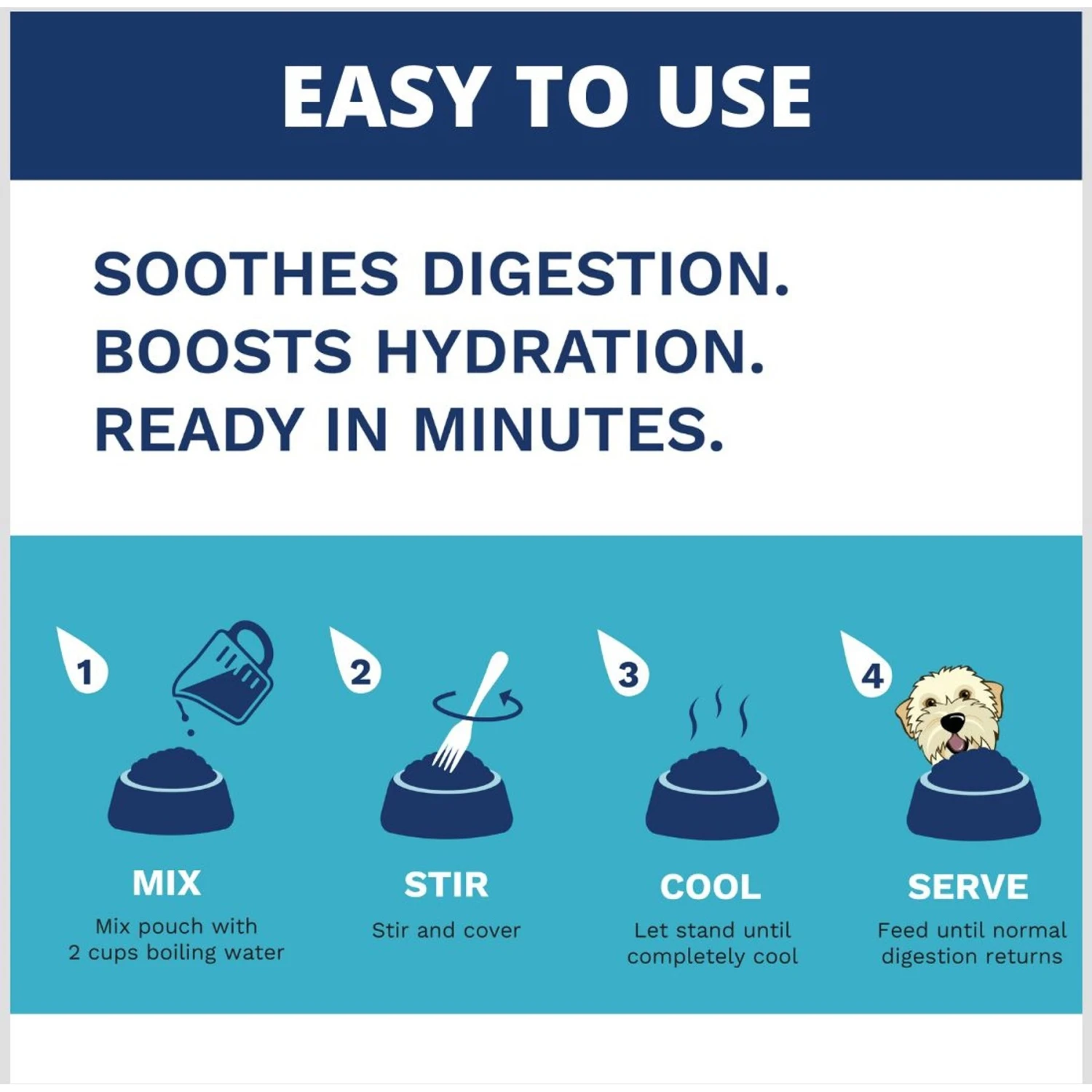 - This bland diet is specially formulated to help soothe your dog’s digestive tract during times of upset, such as vomiting or diarrhea.