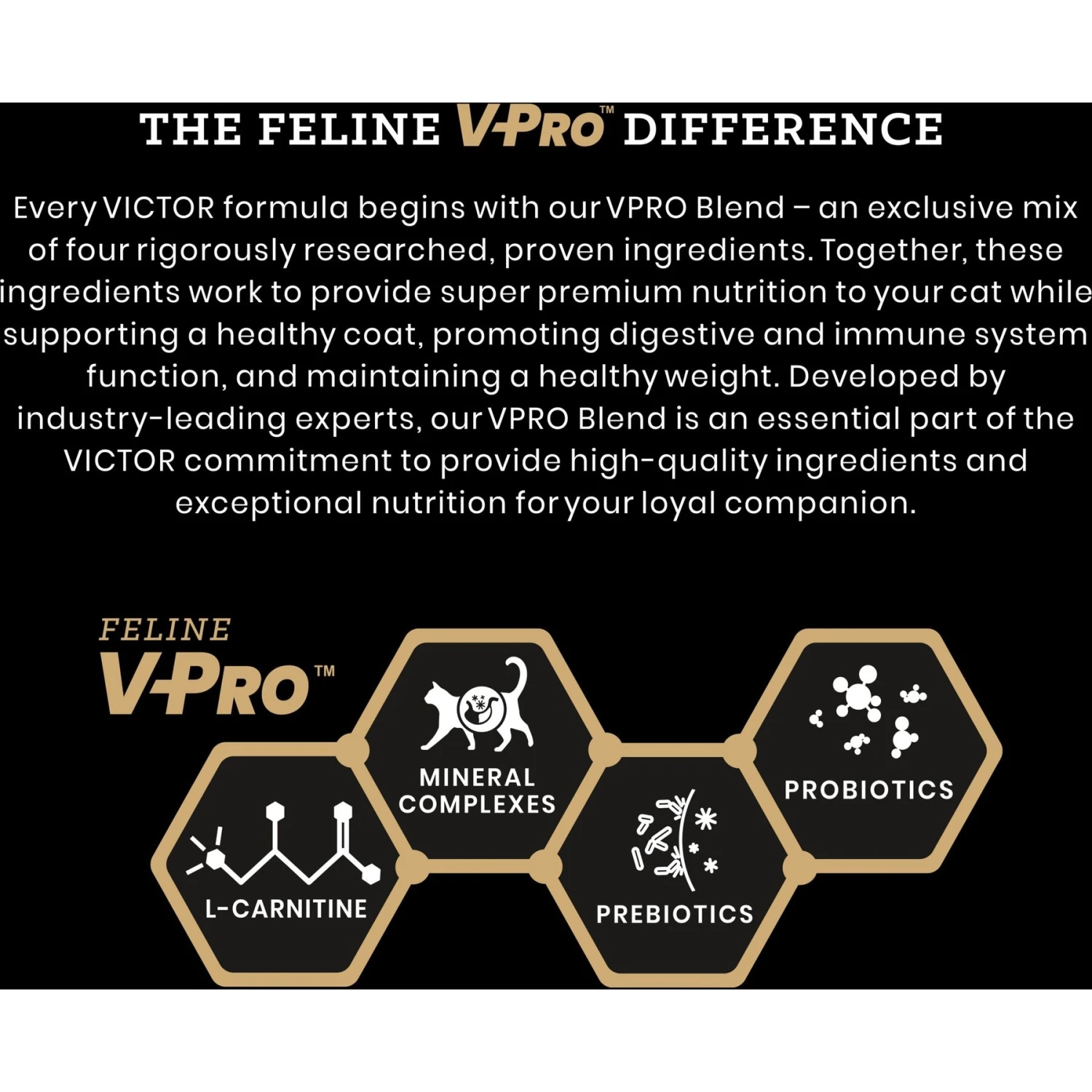 Treat your so-fish-ticated feline to a feast she’ll purr for with VICTOR Healthy Skin & Coat Indoor Grain-Free Dry Cat Food, a high-protein formula ideal for indoor cats. This dry food features a delicious, grain-free recipe with real salmon to promote your kitty’s lean muscle development while maintaining her healthy weight. Natural fiber helps support her digestive system, while omega-3 and omega-6 fatty acids nourish your fur-iend’s skin and coat.