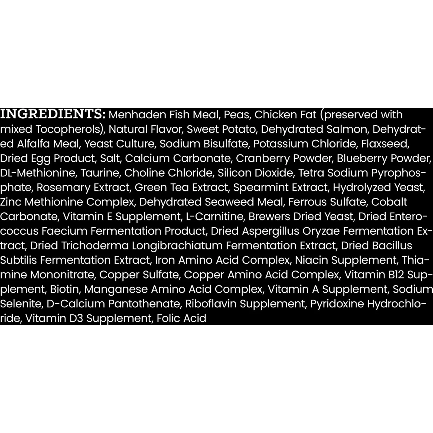 - Grain-free, dry food contains salmon as a delicious source of quality protein your cat will love.