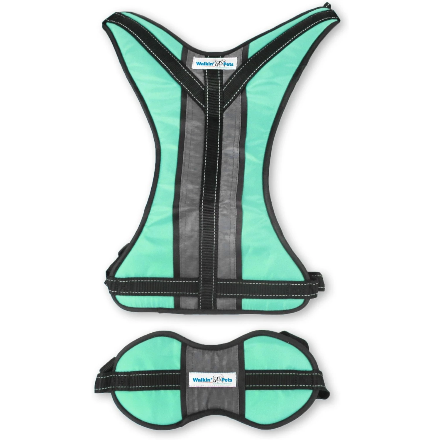 - Use as a walking harness by attaching a leash to the D-ring on the back of the chest piece!
