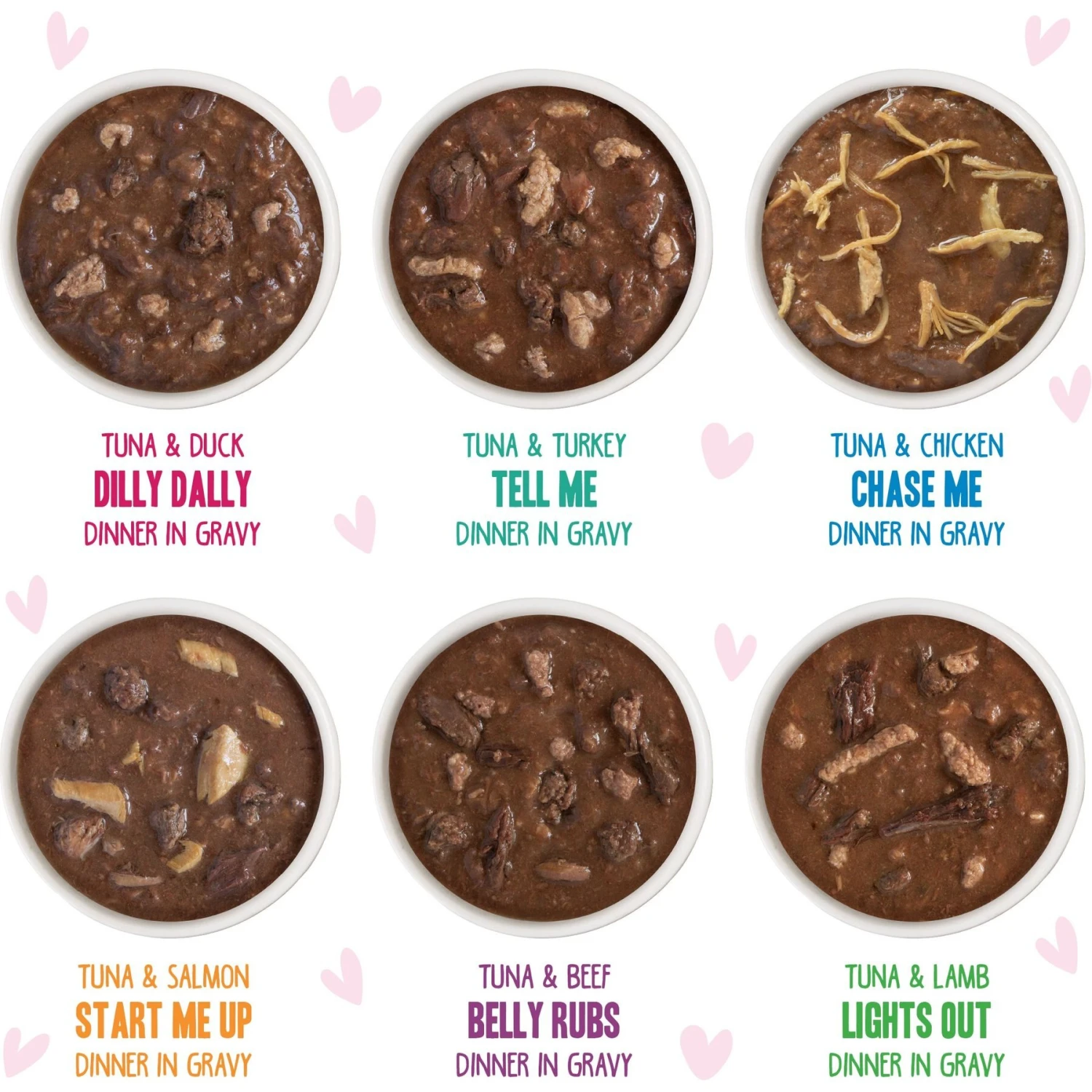 Give your purring pal the nutrition she needs with Weruva B.F.F. OMG Best Feline Friend Oh My Gravy! Tickle Me Pinks! Variety Pack Grain-Free Wet Cat Food! This all-natural wet food is purr-pared with six unique recipes featuring a variety of seafood in a delectable gravy. It features vitamins, minerals, and antioxidants, and it’s free from grains, gluten, carrageenan, corn, wheat, soy, and artificial colors and preservatives. Even the most finicky feline will me-wow at the irresistible taste, and you can rest easy knowing you’re giving her a fur-esh, high-quality meal!