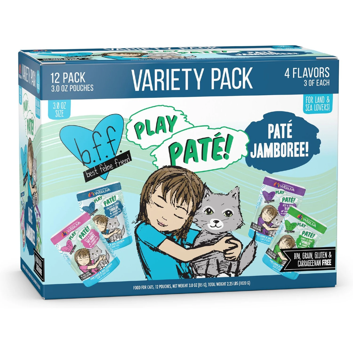 Your feline friend will be purring with delight once she tries this Weruva Best Feline Friend Paté Lovers, Aw Yeah!, Paté Jamboree! Variety Pack Grain-Free Wet Cat Food! This variety pack contains four all-natural wet cat food recipes made with land and sea proteins. These recipes deliver the protein and moisture your cat needs in her diet and they are low in carbs and fat. And since they come in Slide N’ Serve Pouches, each meal is paws-tively easy to serve! You can have peace of mind knowing that the recipes in this variety pack are made without grains, gluten, starch, carrageenan, corn, wheat, soy or artificial colors or preservatives. Your cat companion will love this variety pack and so will you!
